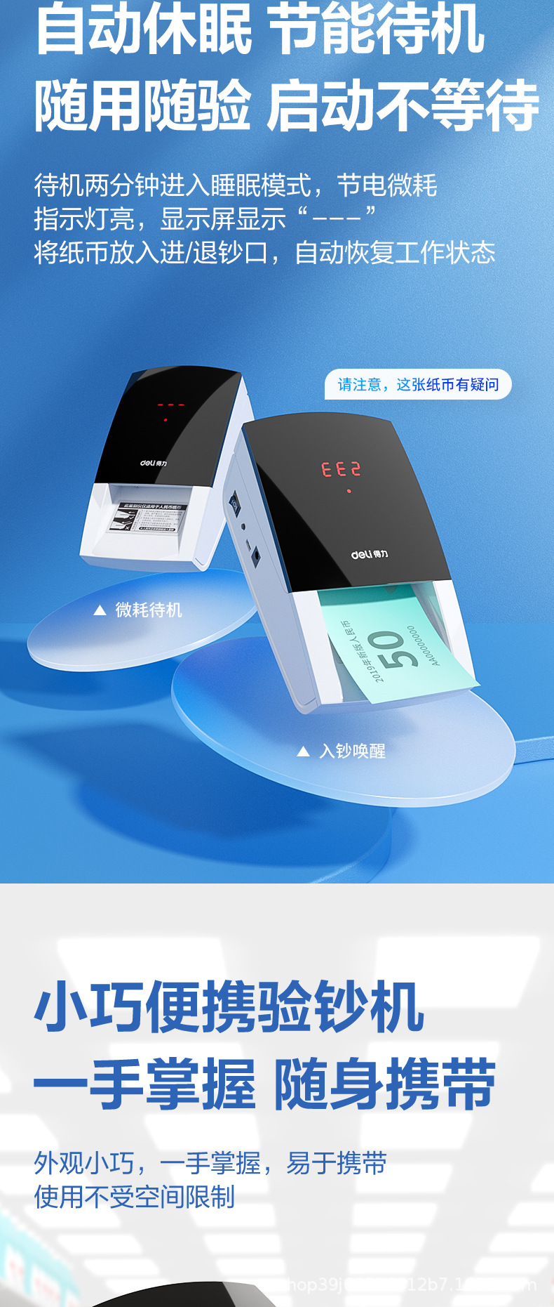 Deli 2129 Детектор банкнот Перезаряжаемый ручной счетчик наличных денег Новая версия для домашнего и коммерческого использования Маленький портативный детектор валюты.