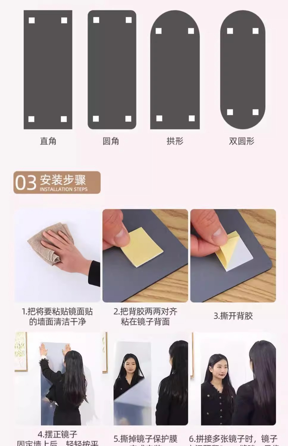 Мягкое зеркало, настенное самоклеющееся акриловое зеркало для одевания всего тела, домашнее настенное зеркало высокой четкости, наклейка, подходящее зеркало