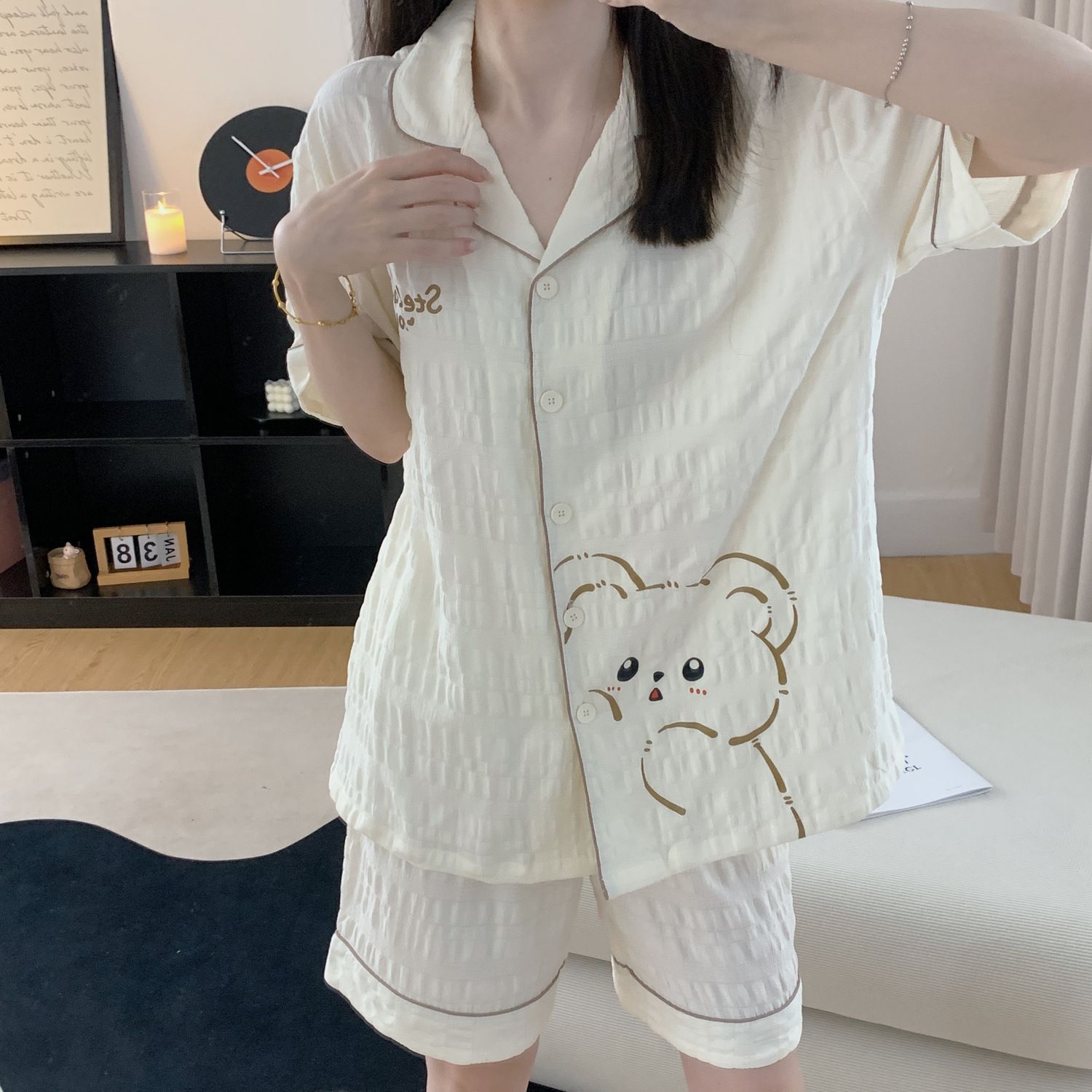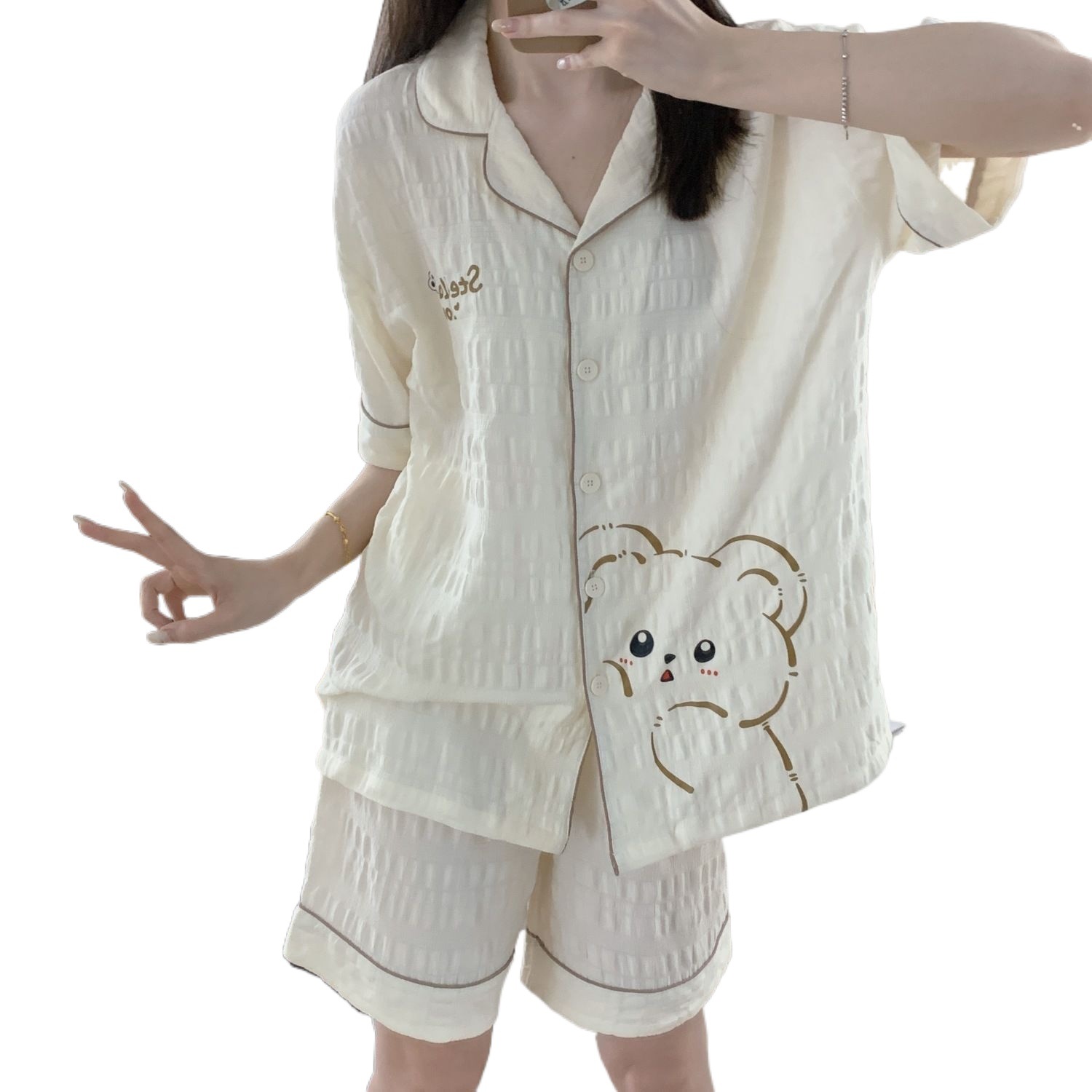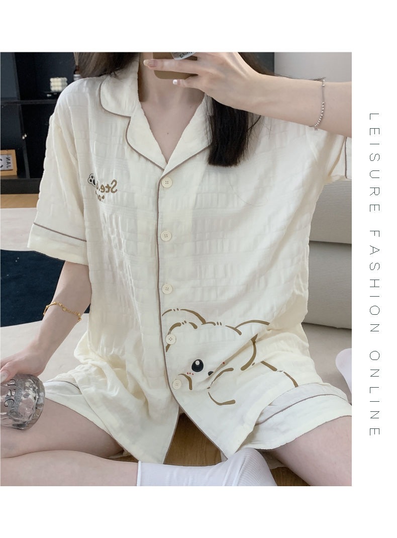 Летние пижамы с мультяшным медведем для женщин, корейский стиль, нишевый дизайн, хлопковая студенческая домашняя одежда для девочек, которую можно носить на улице