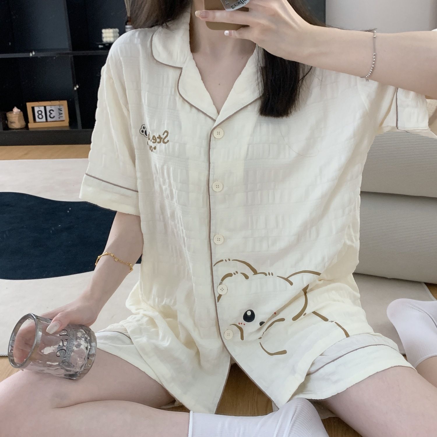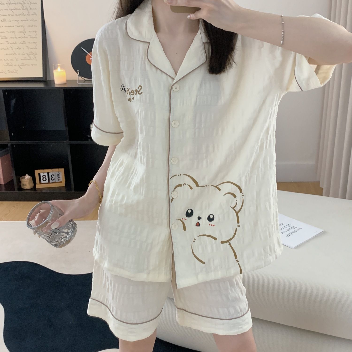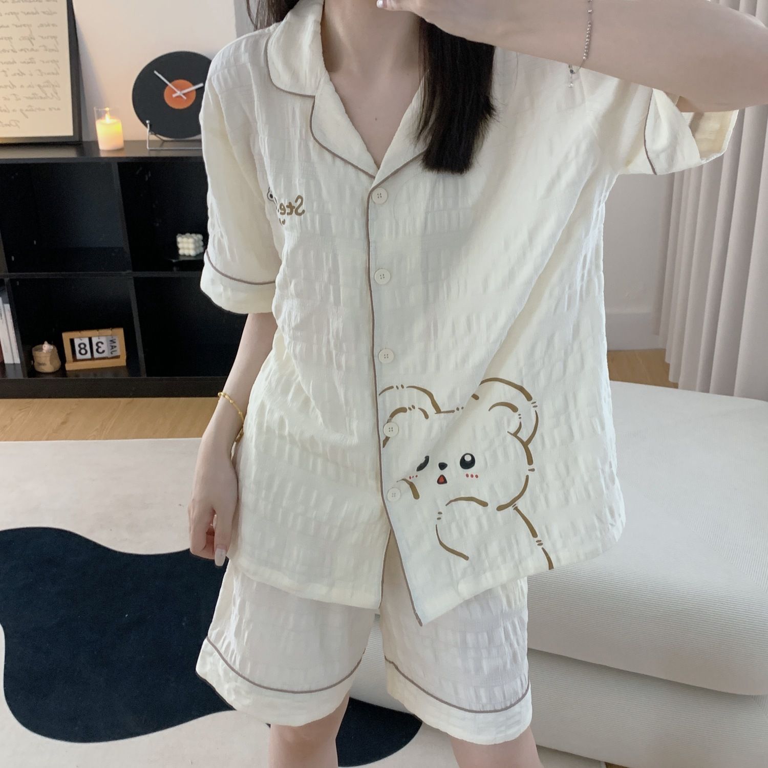 Летние пижамы с мультяшным медведем для женщин, корейский стиль, нишевый дизайн, хлопковая студенческая домашняя одежда для девочек, которую можно носить на улице