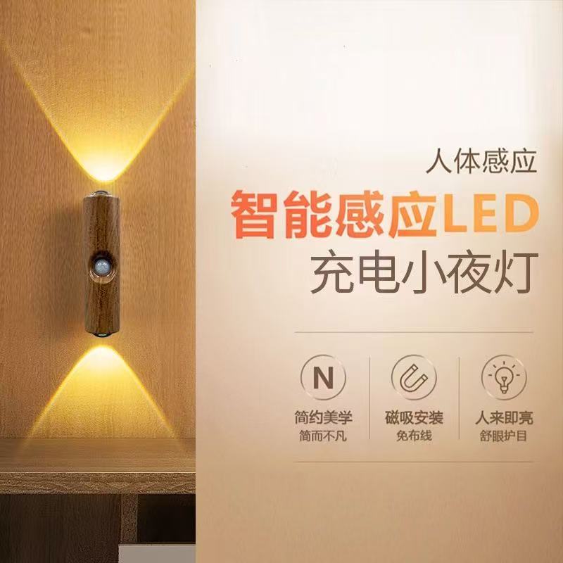 Новая трансграничная умная лампа с датчиком человеческого тела, магнитная атмосферная лампа без перфорации, перезаряжаемый ночник, двойной настенный светильник «кошачий глаз»