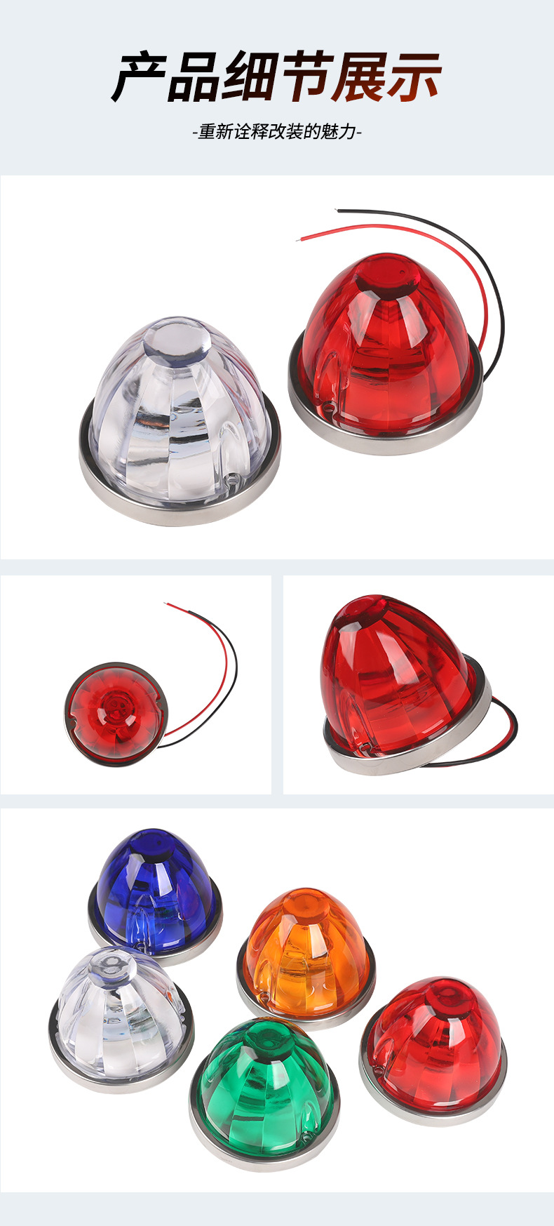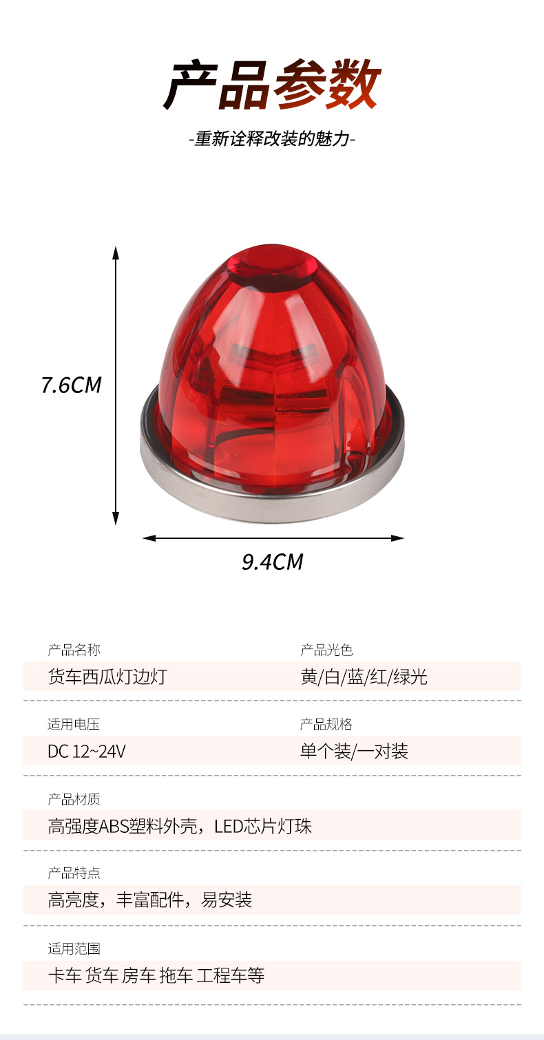 Стеклянная пластиковая лампа в виде арбуза, боковая лампа для грузовика, индикатор ширины грузовика, индикаторная лампа, боковая лампа, светодиодная лампа, сигнальная лампа для корабля