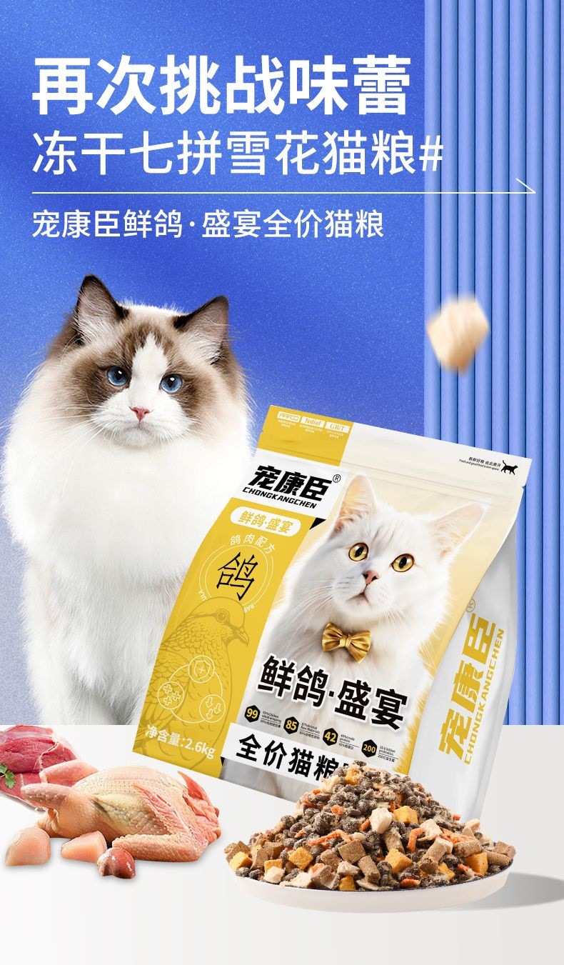 Мясо голубей, не содержащее зерен, свежее мясо, лиофилизированное корм для кошек, обернутое куриными перьями, для взрослых кошек и котят, большая сумка, универсальная полная цена, откармливание и рост щек.