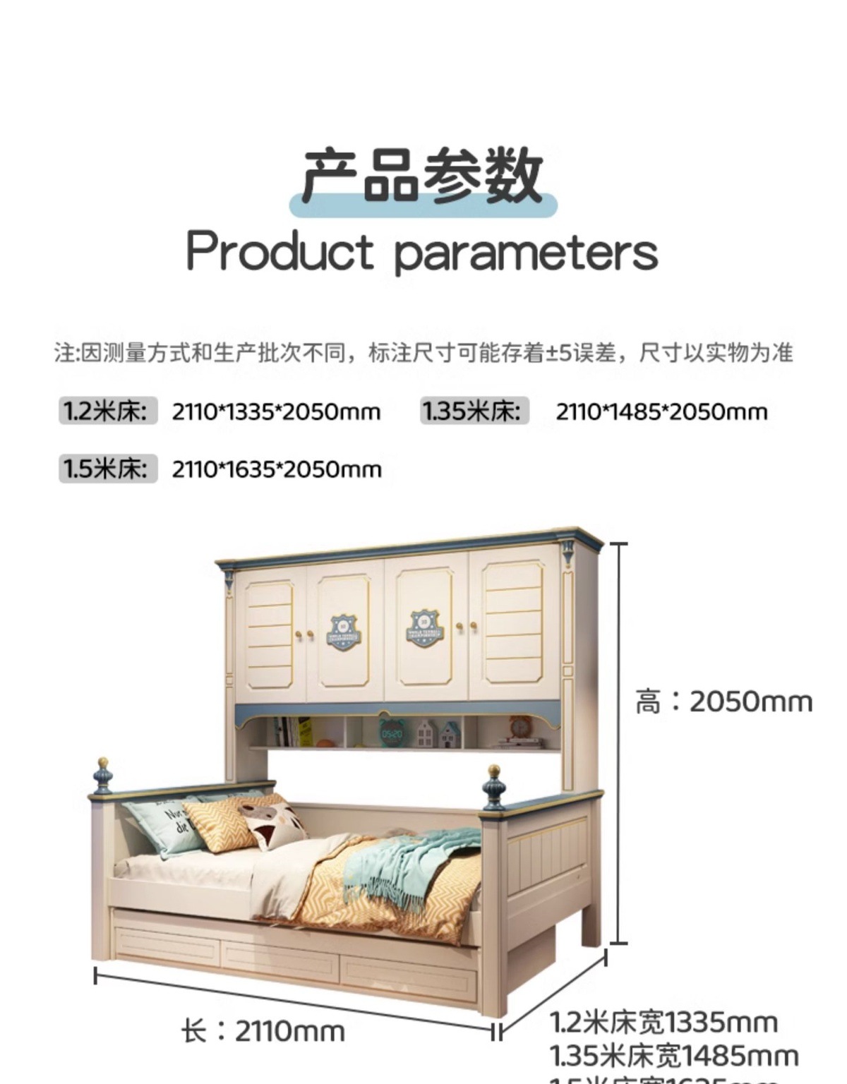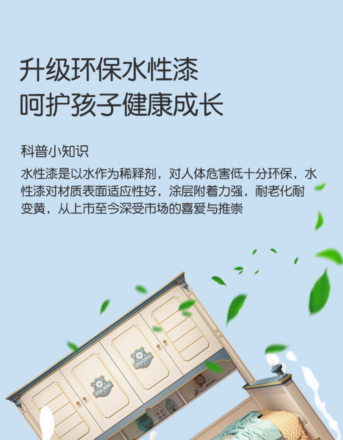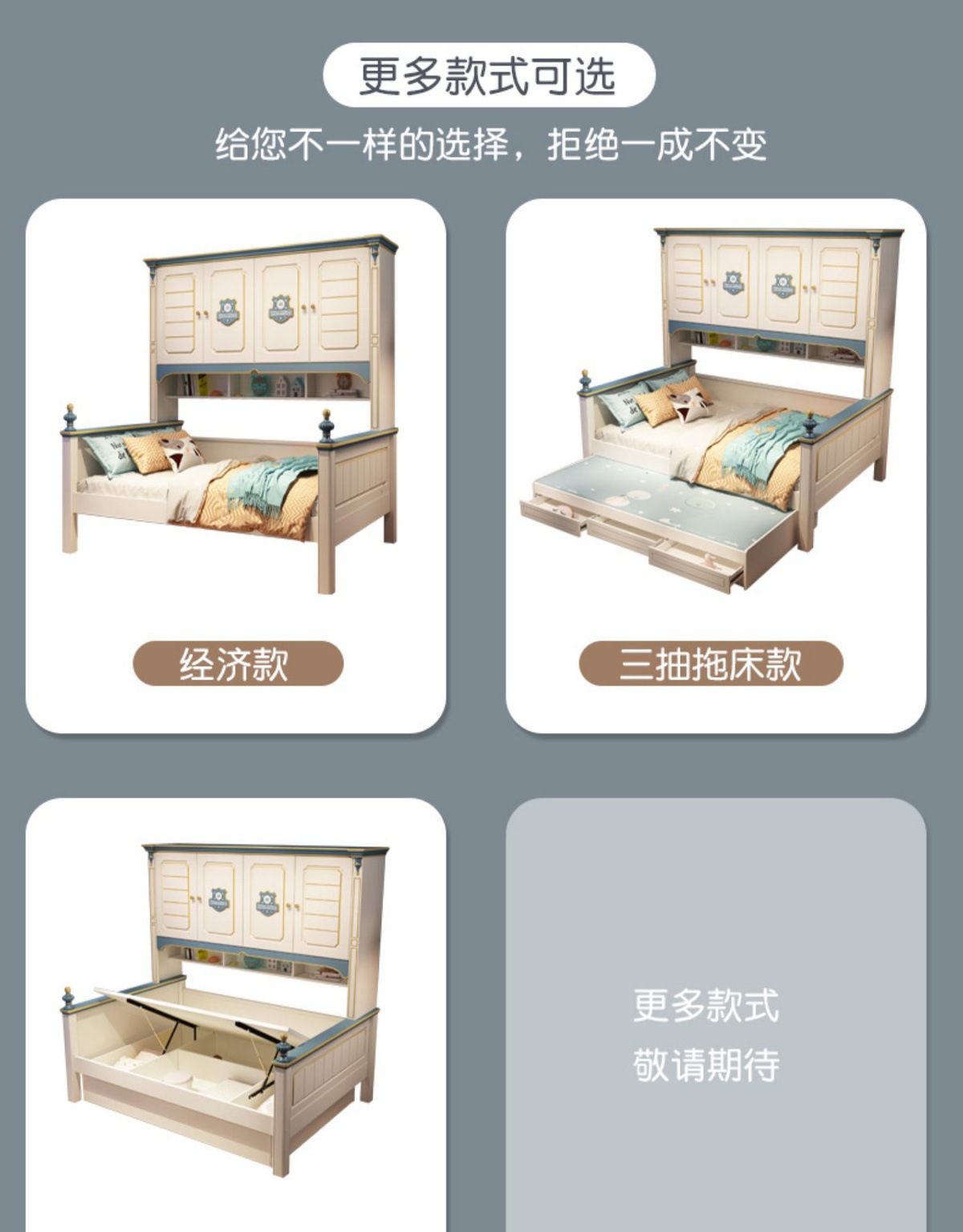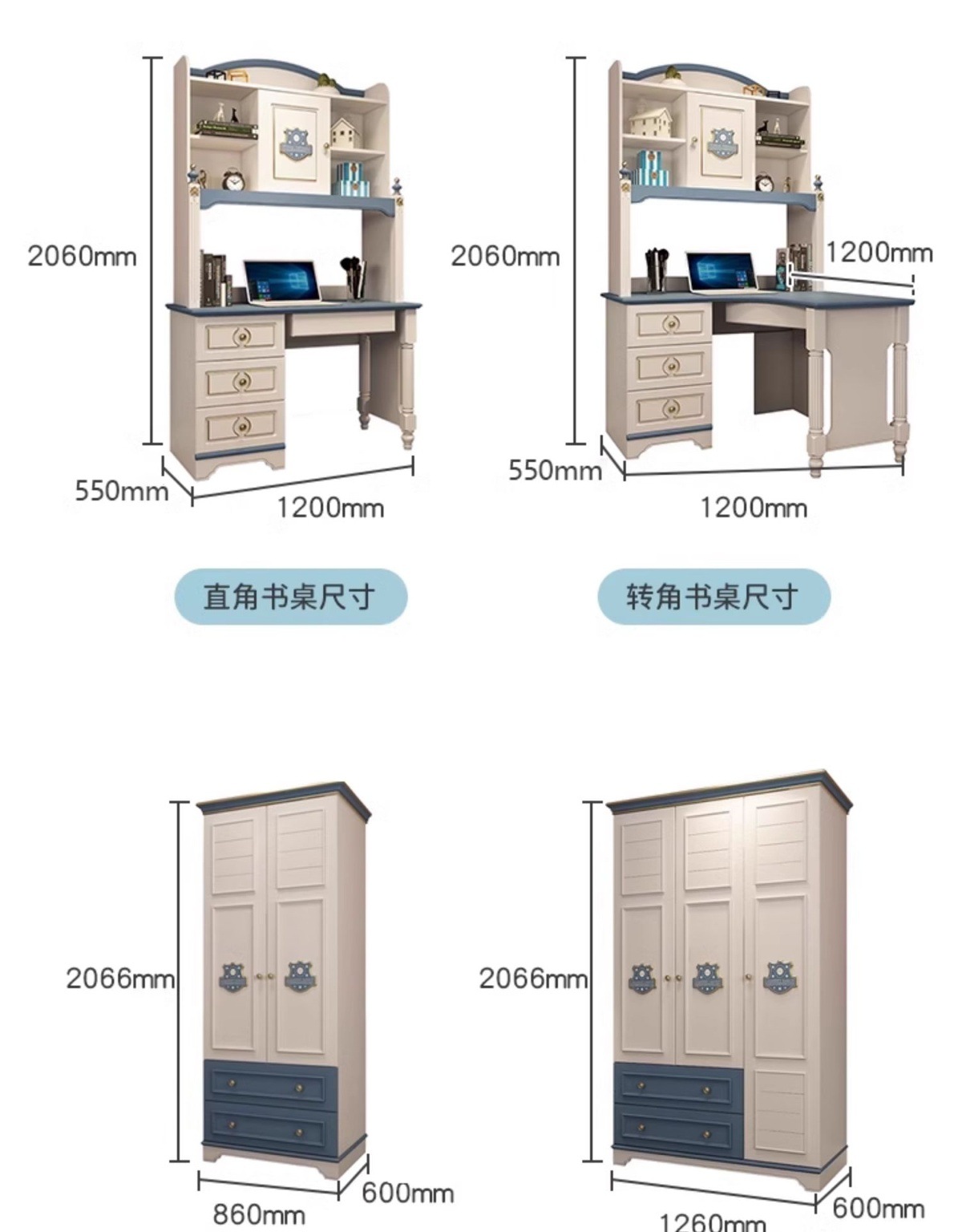 Кровать-купе (бесплатный экологически чистый коричневый коврик 3E); Кровать-купе + кровать с тремя ящиками (бесплатный экологически чистый коричневый коврик 3E); Кровать-купе + высокий ящик (бесплатный экологически чистый коричневый коврик 3E); Кровать-купе + двойной ящик; 1.2m Прямоугольный стол (бесплатный экологически чистый коричневый коврик 3E); 1.2m угловой стол (синий); Шкаф двухдверный 0,8м (синий); Шкаф 1.6m двери (синий); Шкаф 2.1m дверей (синий)