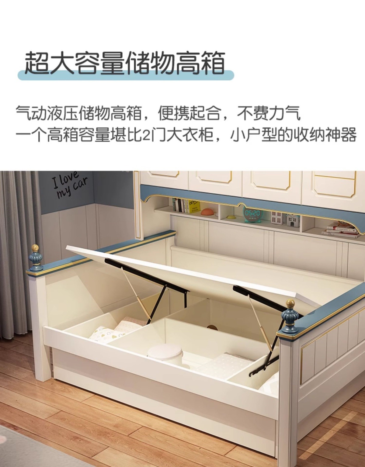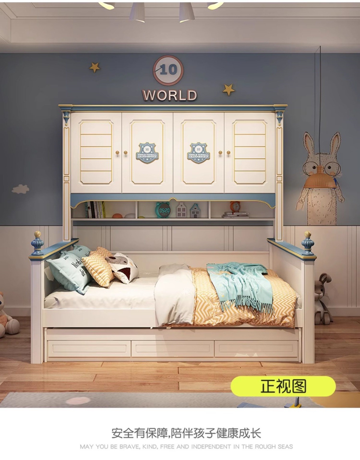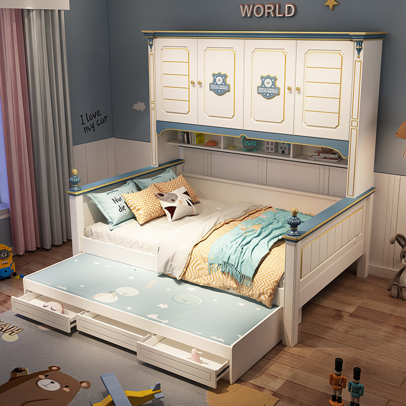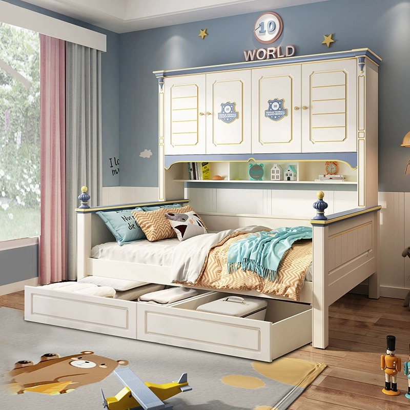 Гардеробная кровать, встроенная кровать, маленькая квартира, домашняя спальня для мальчика, многофункциональный книжный шкаф для хранения, кровать, американская детская кровать