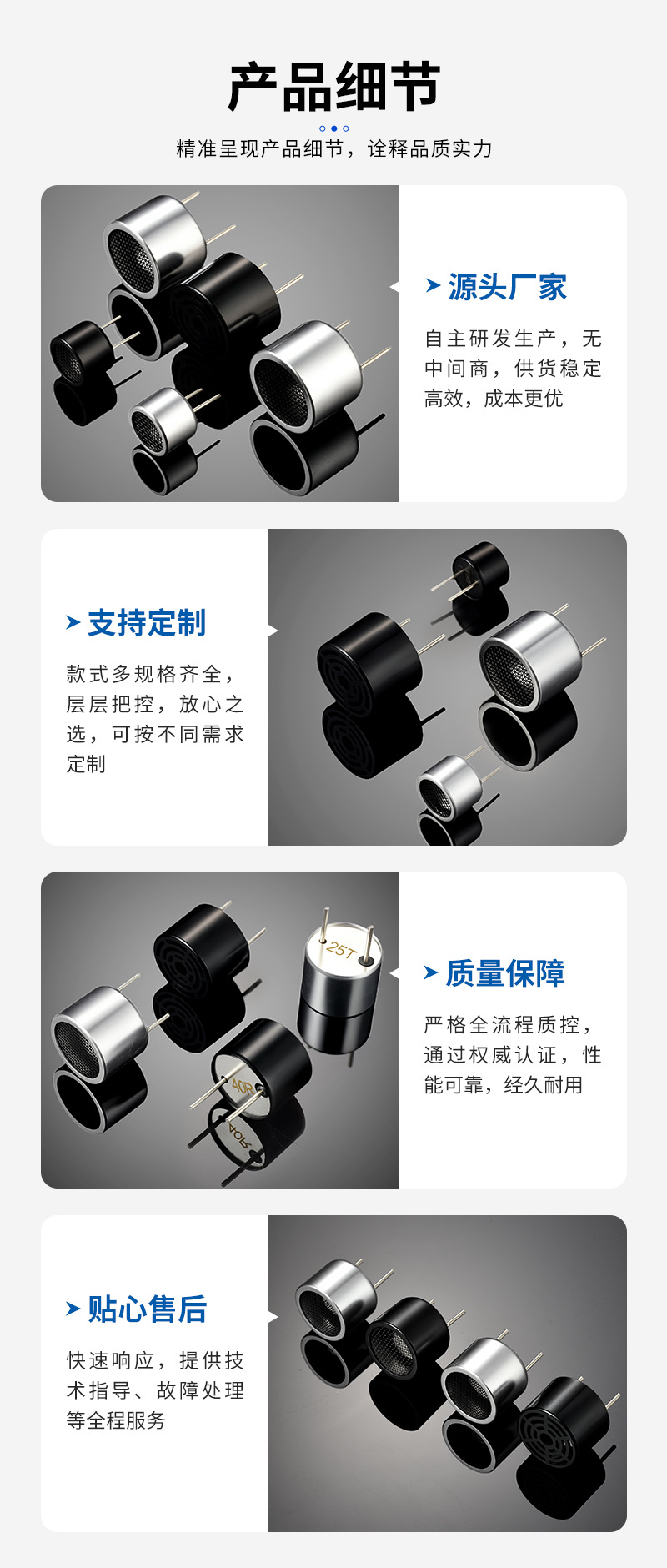40K диаметром 10 мм, запуск T, черный пластиковый корпус; 40K диаметром 10 мм, стартовый корпус из серебристого алюминия; Приемник 40K диаметром 10 мм R, черный пластиковый корпус; Приемник 40K диаметром 10 мм R, корпус из серебристого алюминия; Трансивер диаметром 40K, диаметром 10 мм, встроенный TR, черный пластиковый корпус; Трансивер диаметром 40K, диаметром 10 мм, встроенный корпус из серебристого алюминия TR; 25K диаметром 16 мм, запуск T, черный пластиковый корпус; 25K диаметром 16 мм, серебристый алюминиевый корпус; Приемник 25K диаметром 16 мм R, черный пластиковый корпус; Приемник 25K, диаметр 16 мм, корпус из серебристого алюминия R; 40K диаметр 16 мм запуск T черный пластиковый корпус; 40K диаметр 16 мм пусковой Т-образный серебристый алюминиевый корпус; Приемник 40K диаметром 16 мм R, черный пластиковый корпус; Приемник 40K диаметром 16 мм R, корпус из серебристого алюминия; Трансивер диаметром 40K, диаметром 16 мм, встроенный TR, черный пластиковый корпус; Трансивер диаметром 40K, диаметром 16 мм, встроенный корпус из серебристого алюминия TR