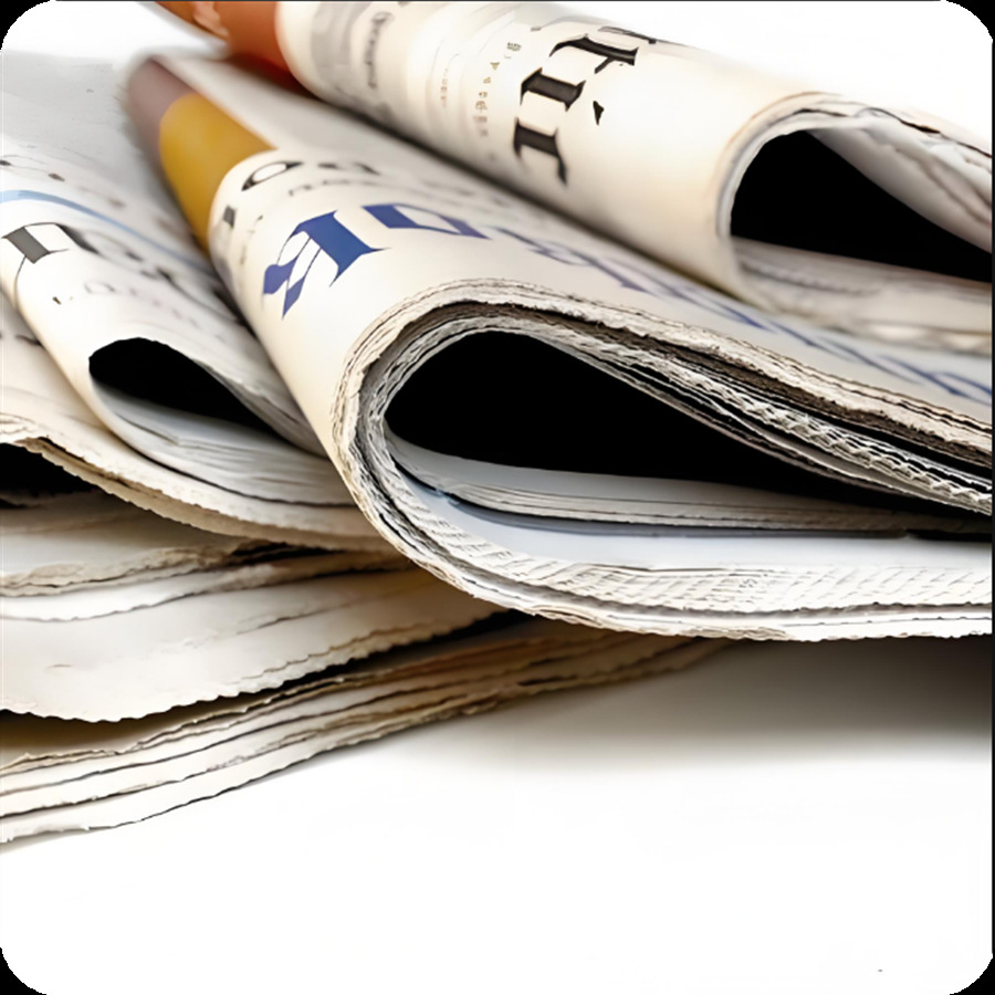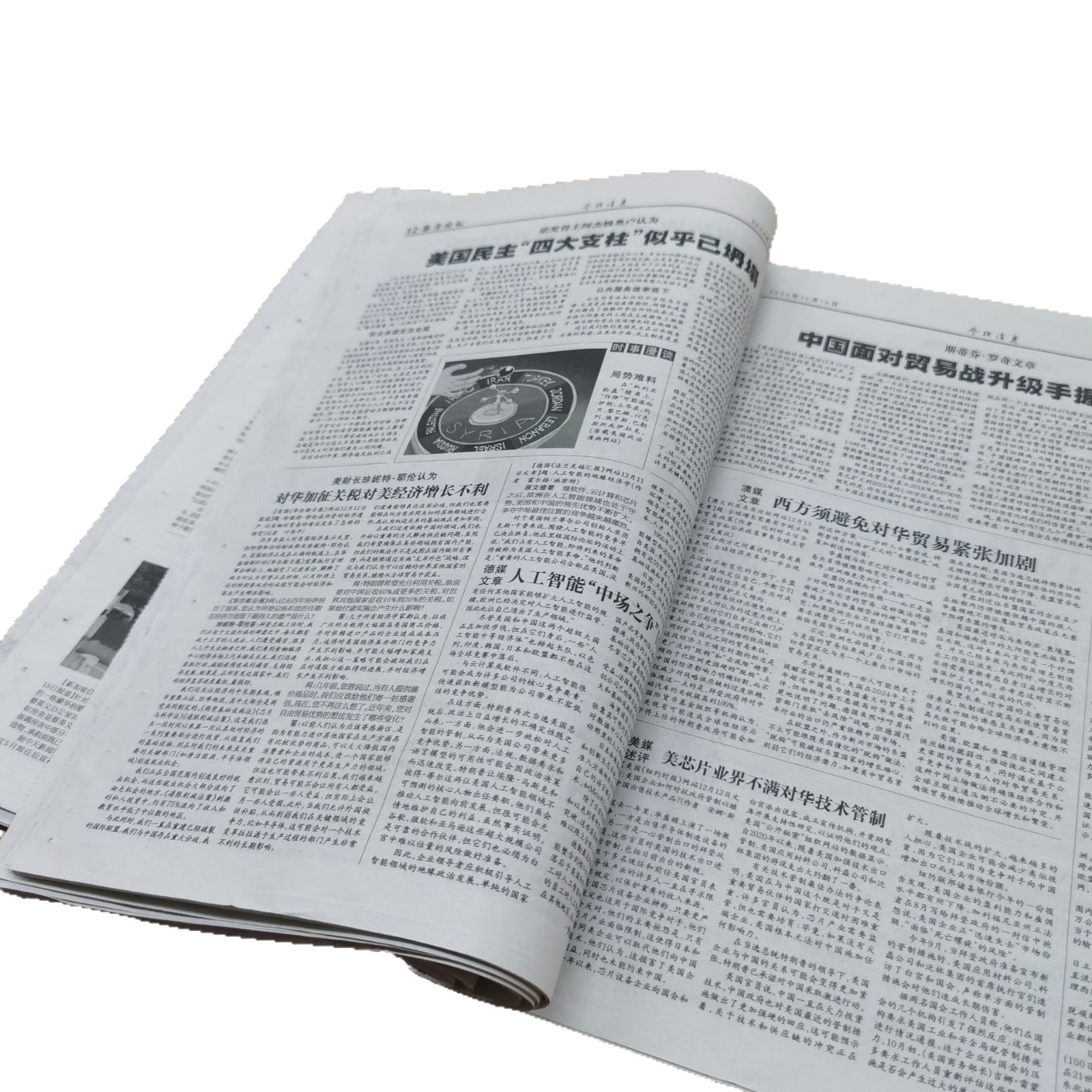 新闻纸(Newspaper)又称白报纸,是报刊及书籍的主要用纸。适用于报纸、期刊、课本、连环画等正文用纸。新闻纸的特点有:纸质松轻、有较好的弹性;吸墨性能好,这就保证了油墨能较好地固着在纸面上。纸张经过压光后两面平滑,不起毛,从而使两面印迹比较清晰而饱满;有一定的机械强度;不透明性能好;适合于高速轮转机印刷。