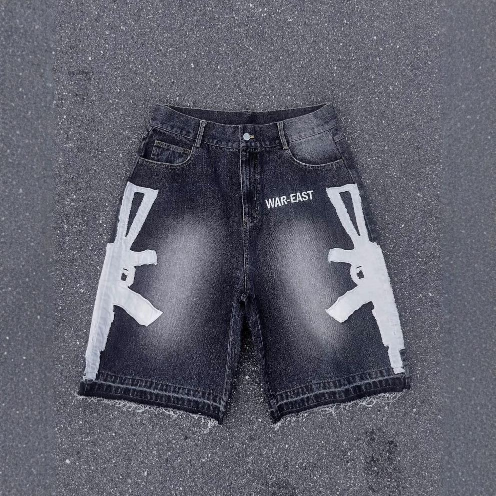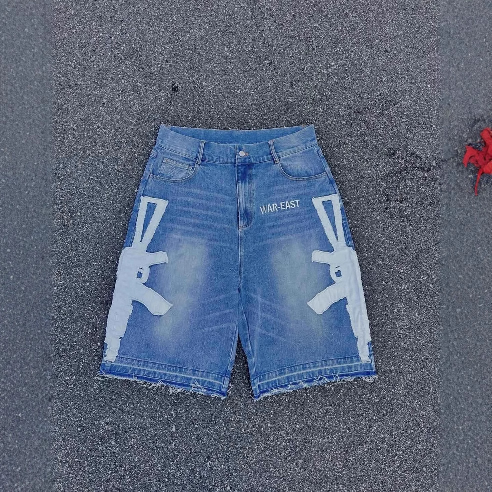 Летние европейские и американские ретро-стильные джинсовые шорты с принтом в стиле хип-хоп, свободные, унисекс, для мужчин и женщин