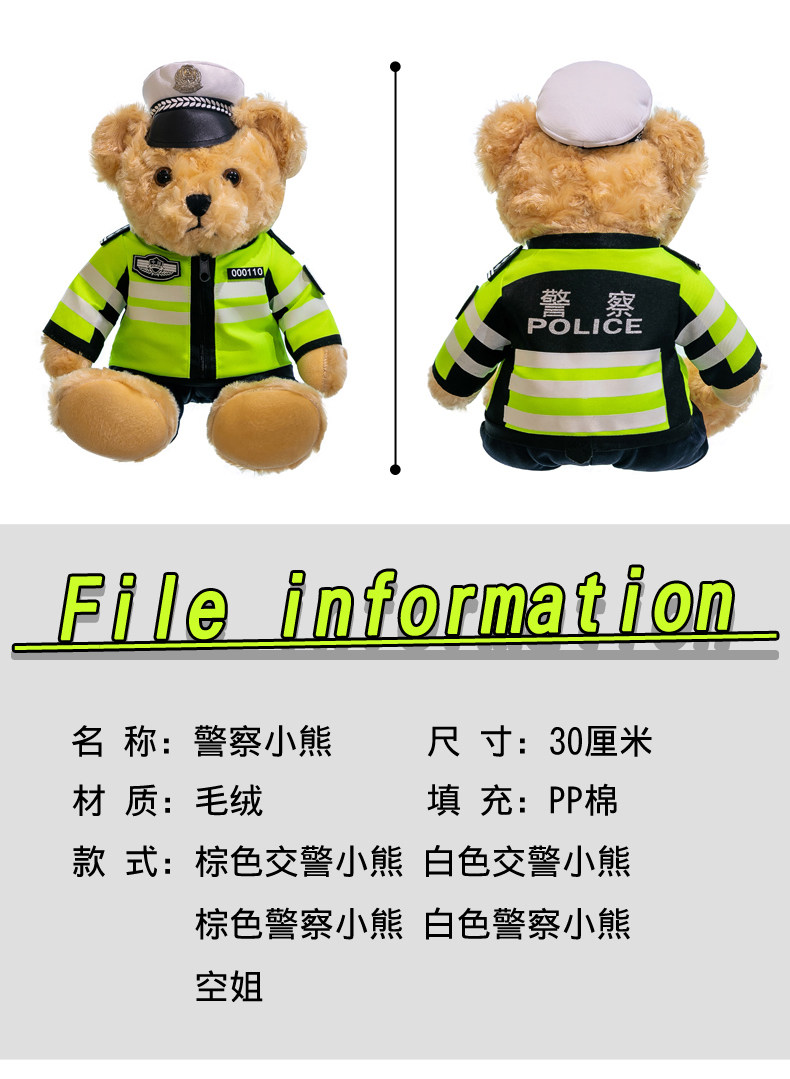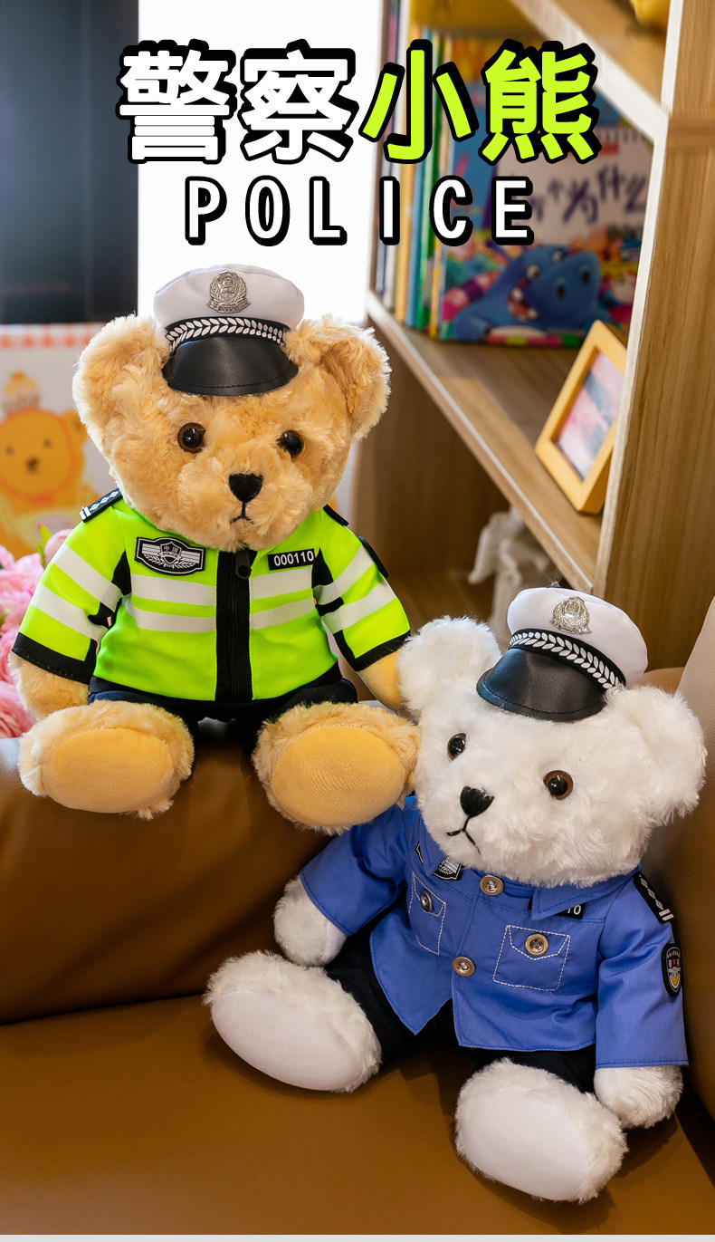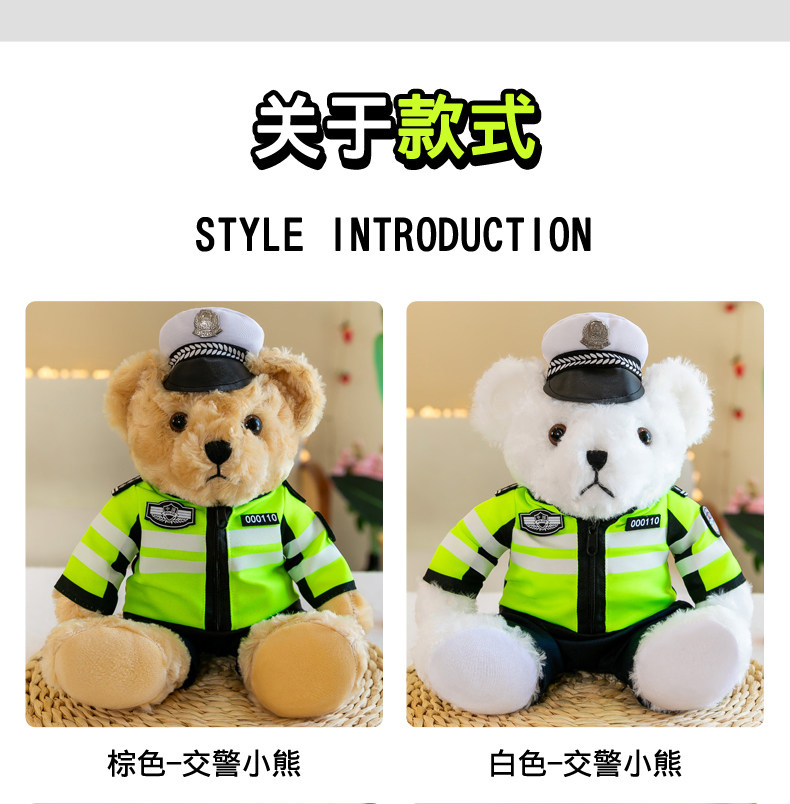Полицейский медведь, кукла, дорожный полицейский, медведь, кукла, униформа, пожарный костюм, плюшевый мишка, мягкая игрушка для девочек, детский подарок