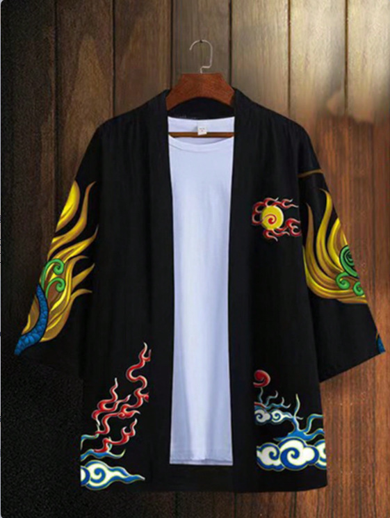 Кимоно хаори, кардиган, аниме, принт дракона, одежда для косплея, европейский и американский стиль Харадзюку, весенне-летняя тонкая куртка, ретро-японская рубашка