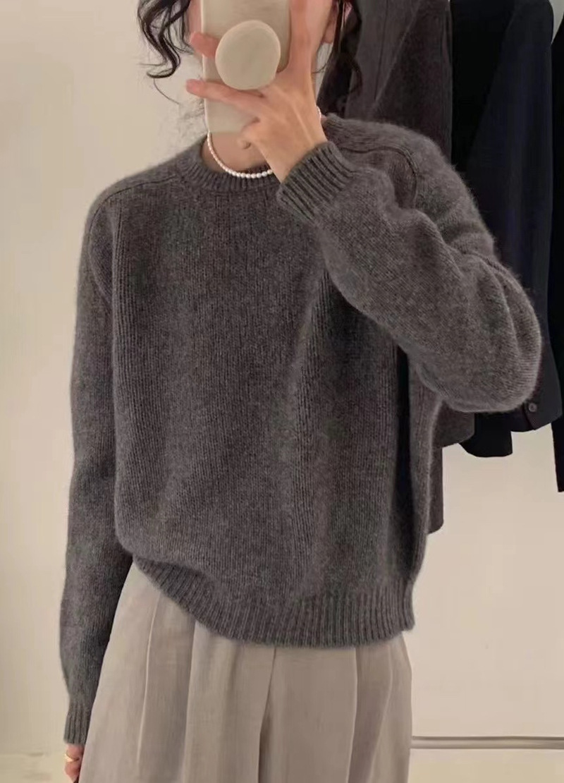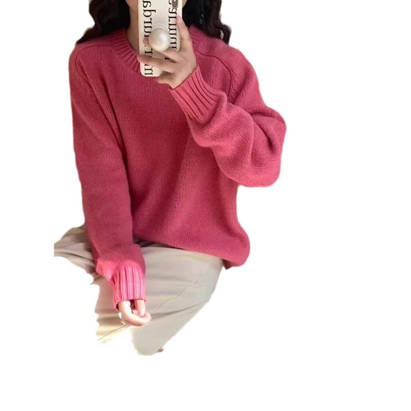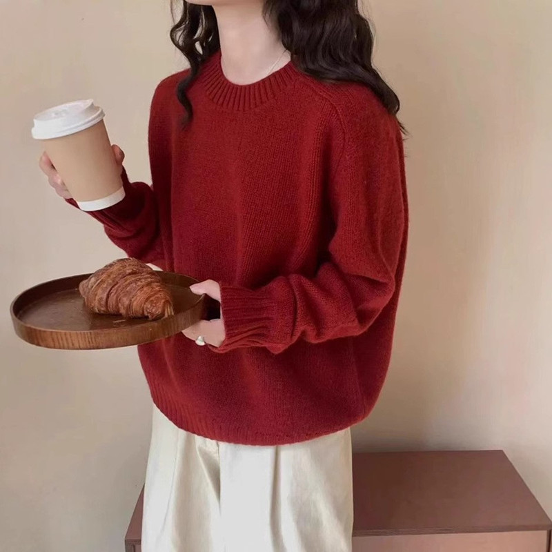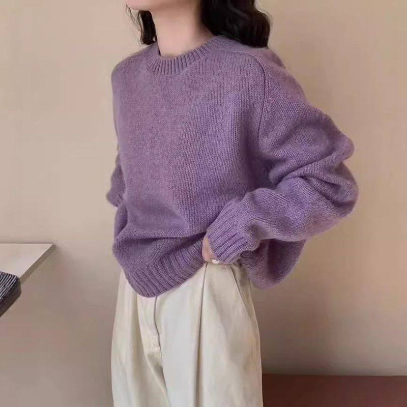 Ретро ленивый стиль, однотонный трикотаж с круглым вырезом для женщин, осень и зима 2025, новый свободный пуловер, мягкий восковой трикотаж для женщин