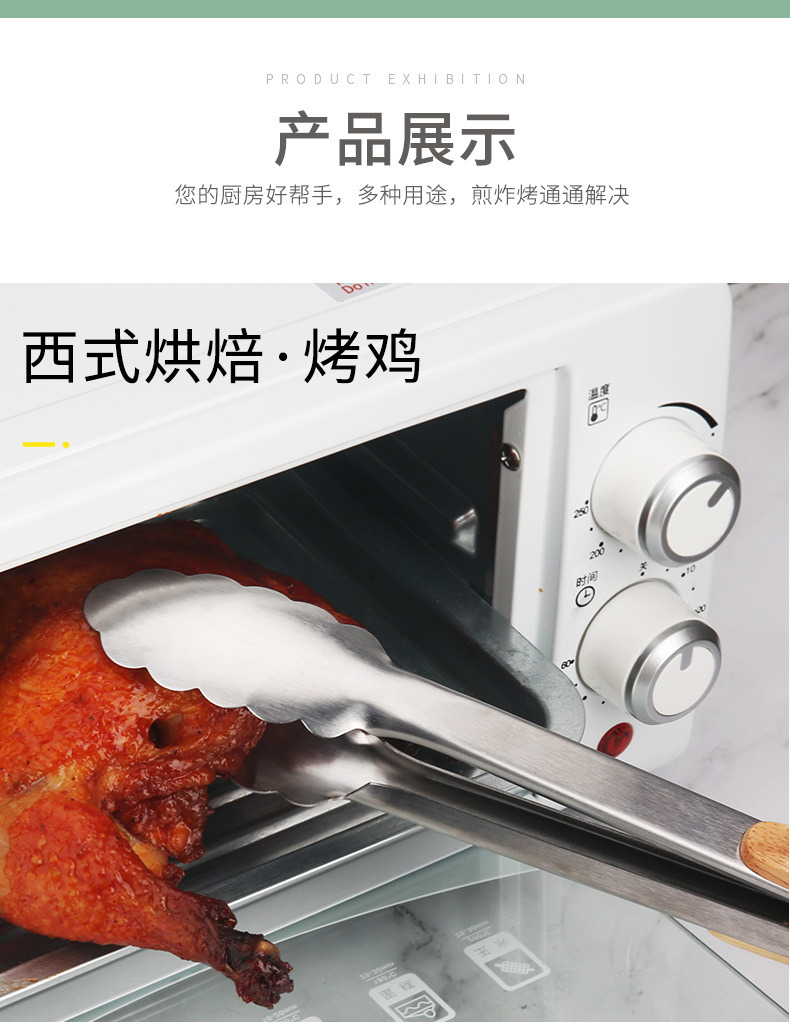 Зажимы для еды из нержавеющей стали, корейские высокотемпературные зажимы для еды, деревянная ручка, противоожоговые зажимы для стейка, зажимы для барбекю, хлеба, барбекю