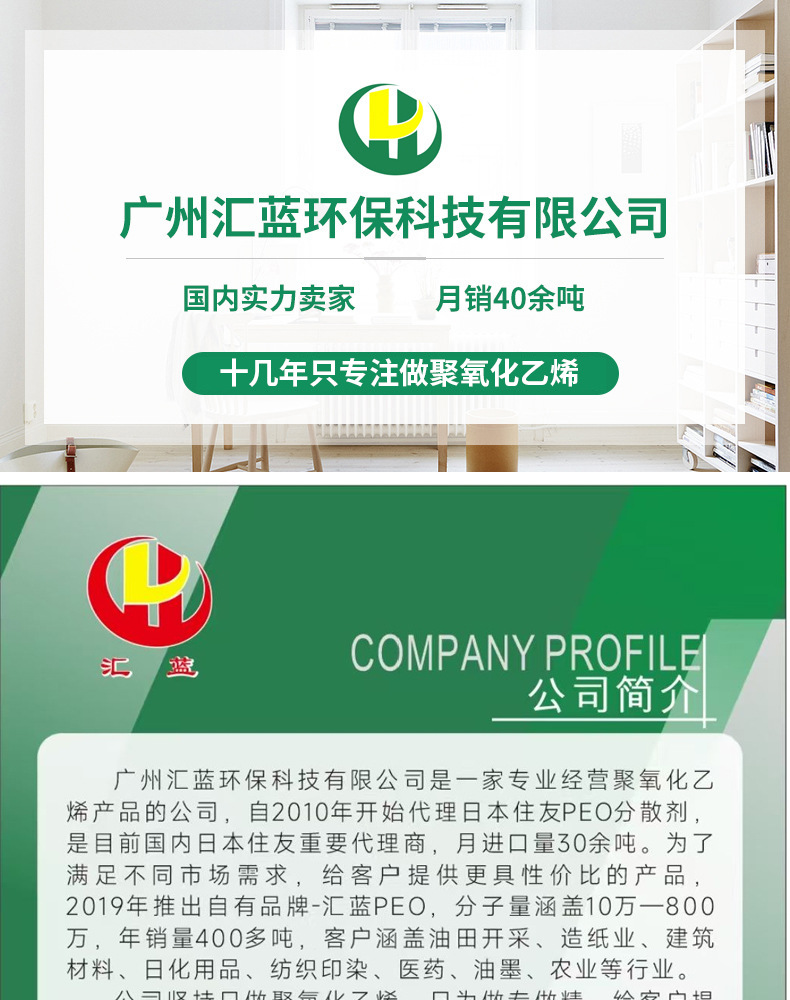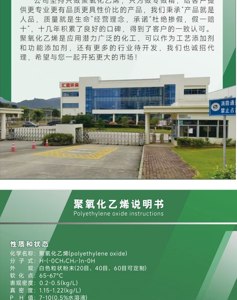 Высомолекулярный полиэтиленовый оксид Hui Lan PEO диспергатор строительный клей порошок полипропиленовый клей порошок загуститель для специального применения.