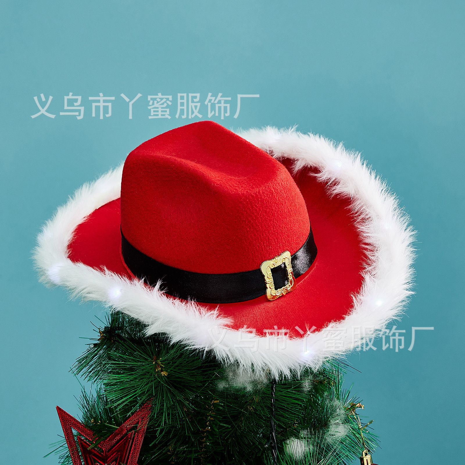 Ковбойская шляпа Санта-Клауса от производителя Amazon, белая, с меховым краем, вестерн, с перьями, рождественская ковбойская шляпа