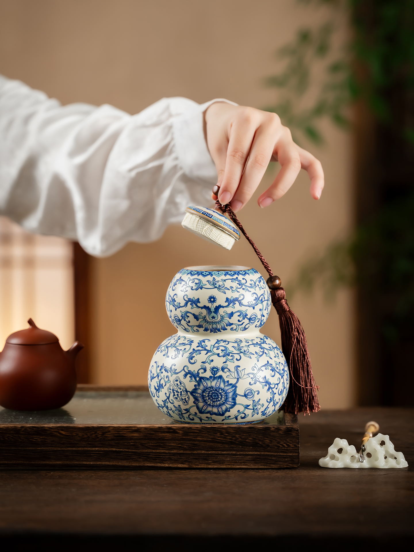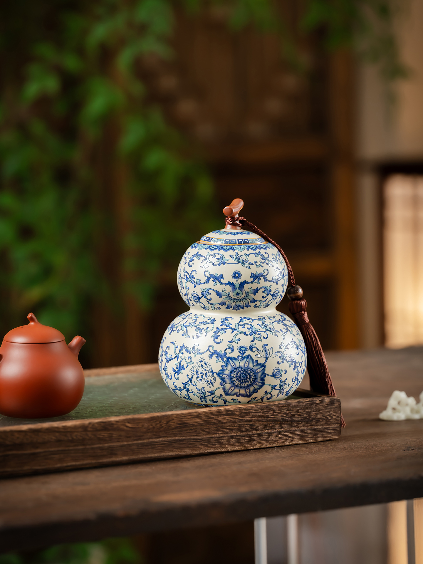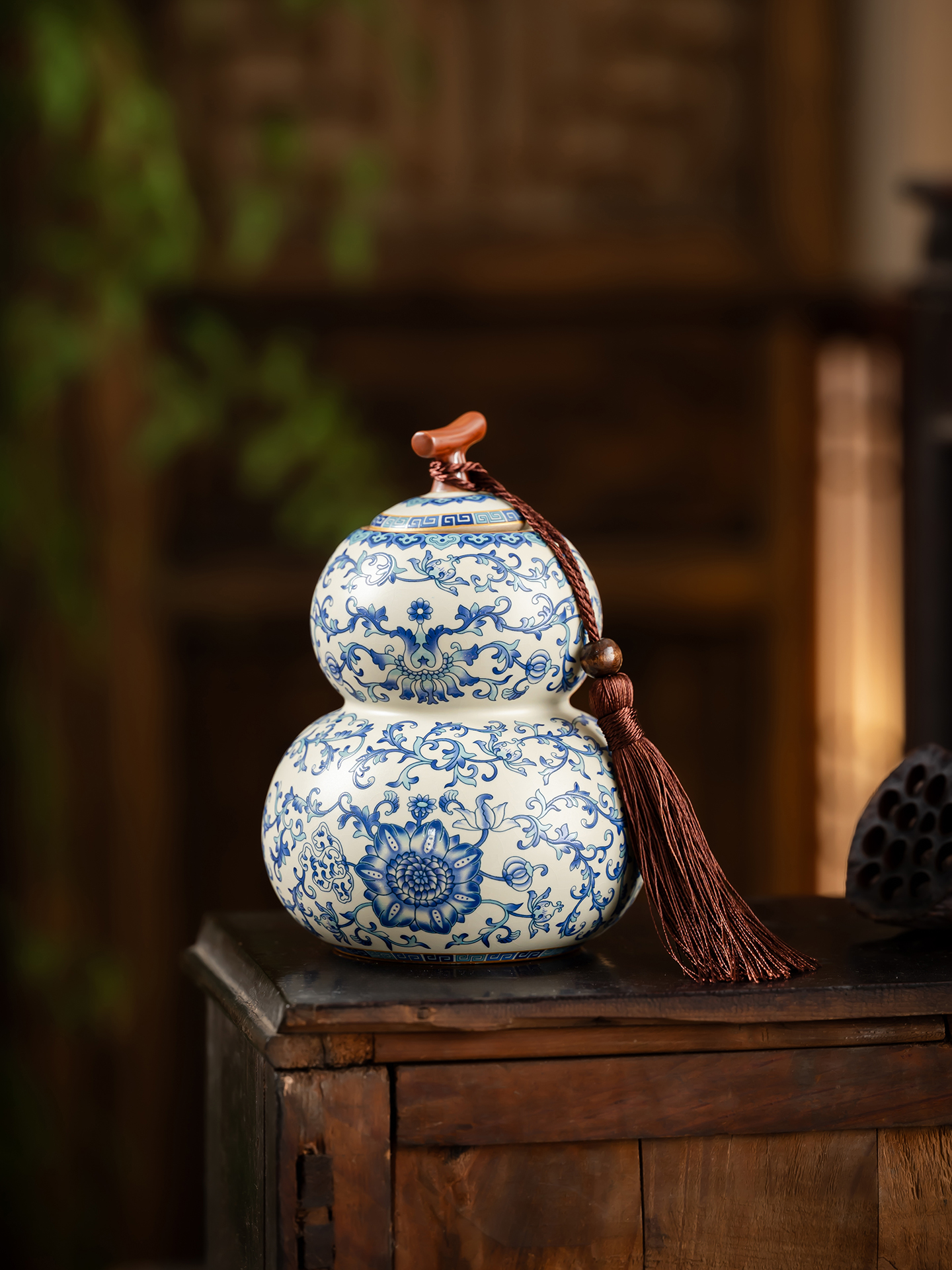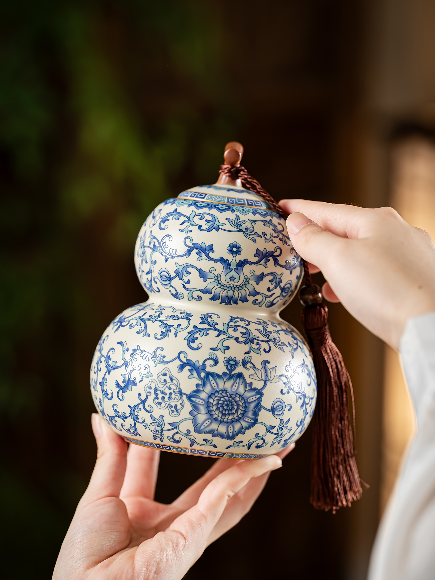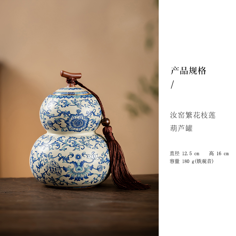 Сине-белая керамическая чайная банка Ru Kiln, большая тыква в стиле ретро, банка для хранения чая, герметичная банка, бытовая банка для хранения чая