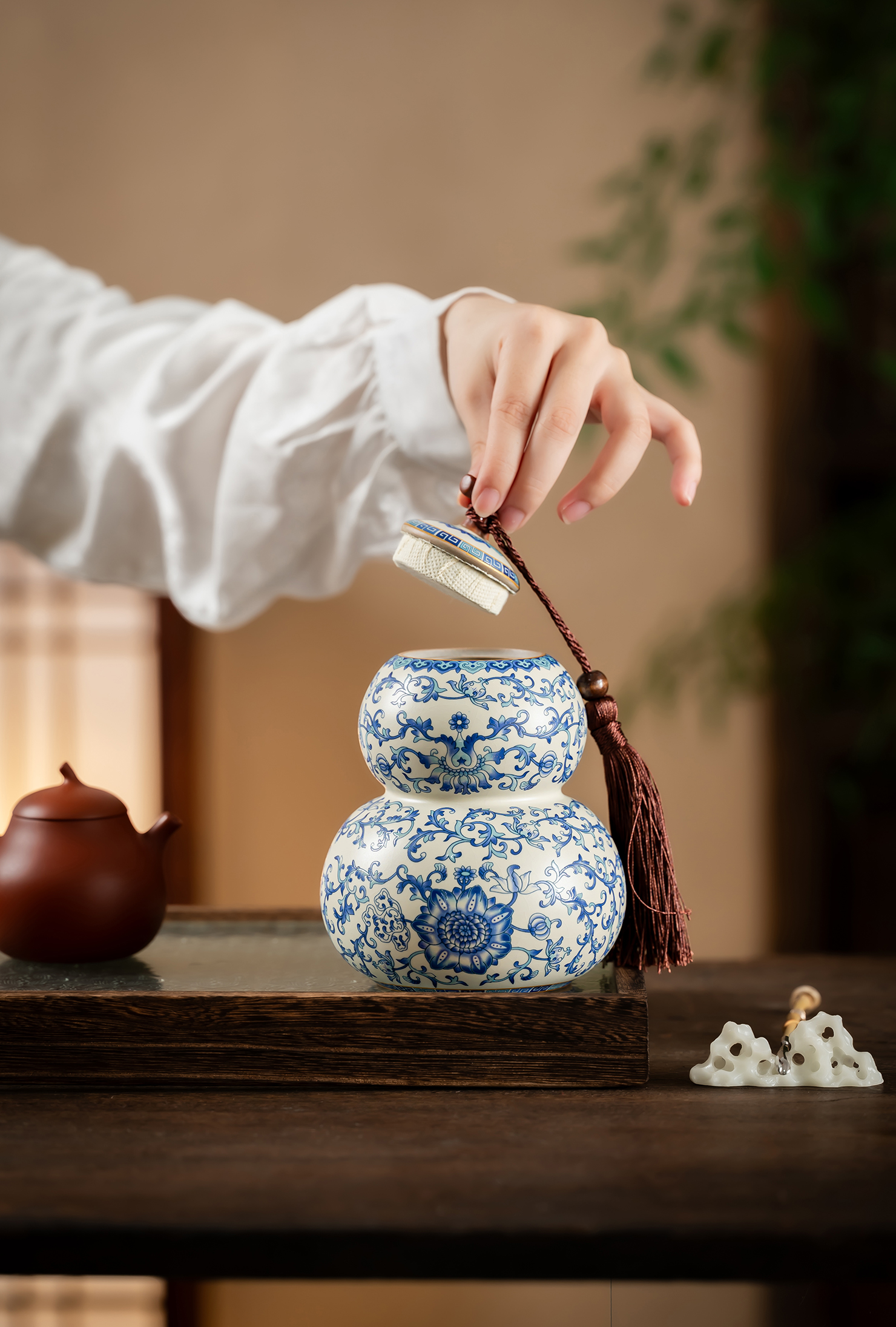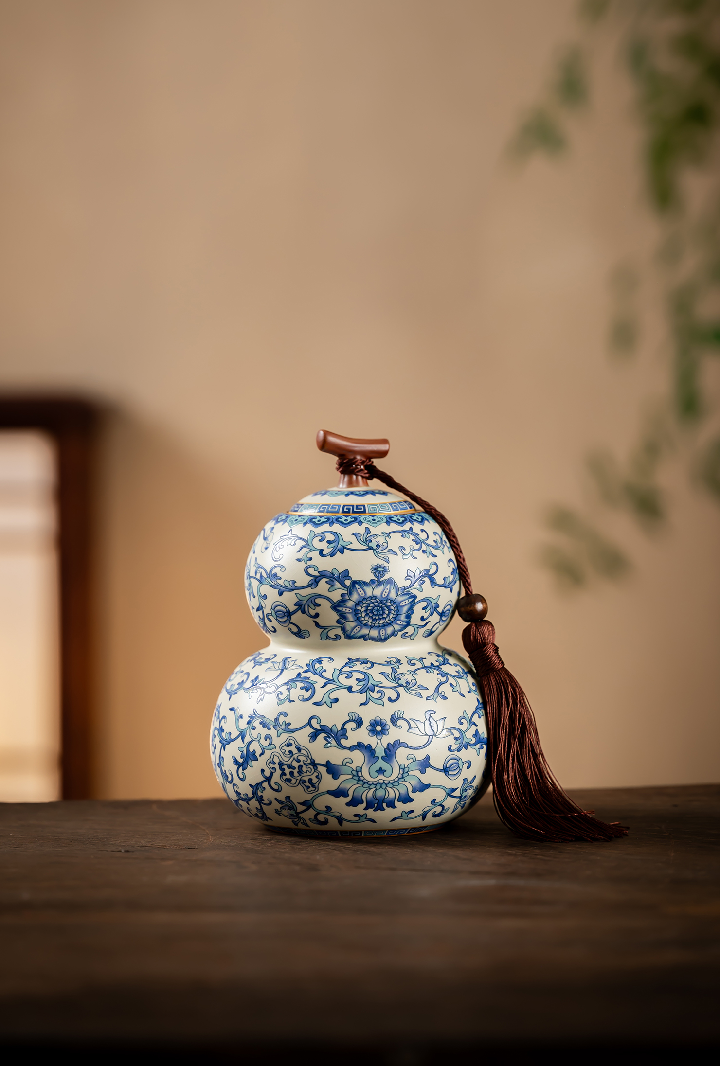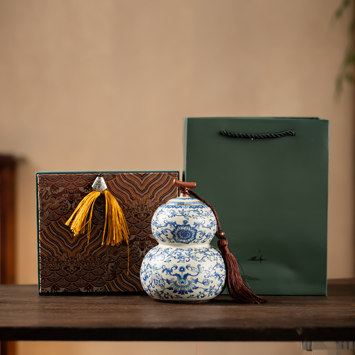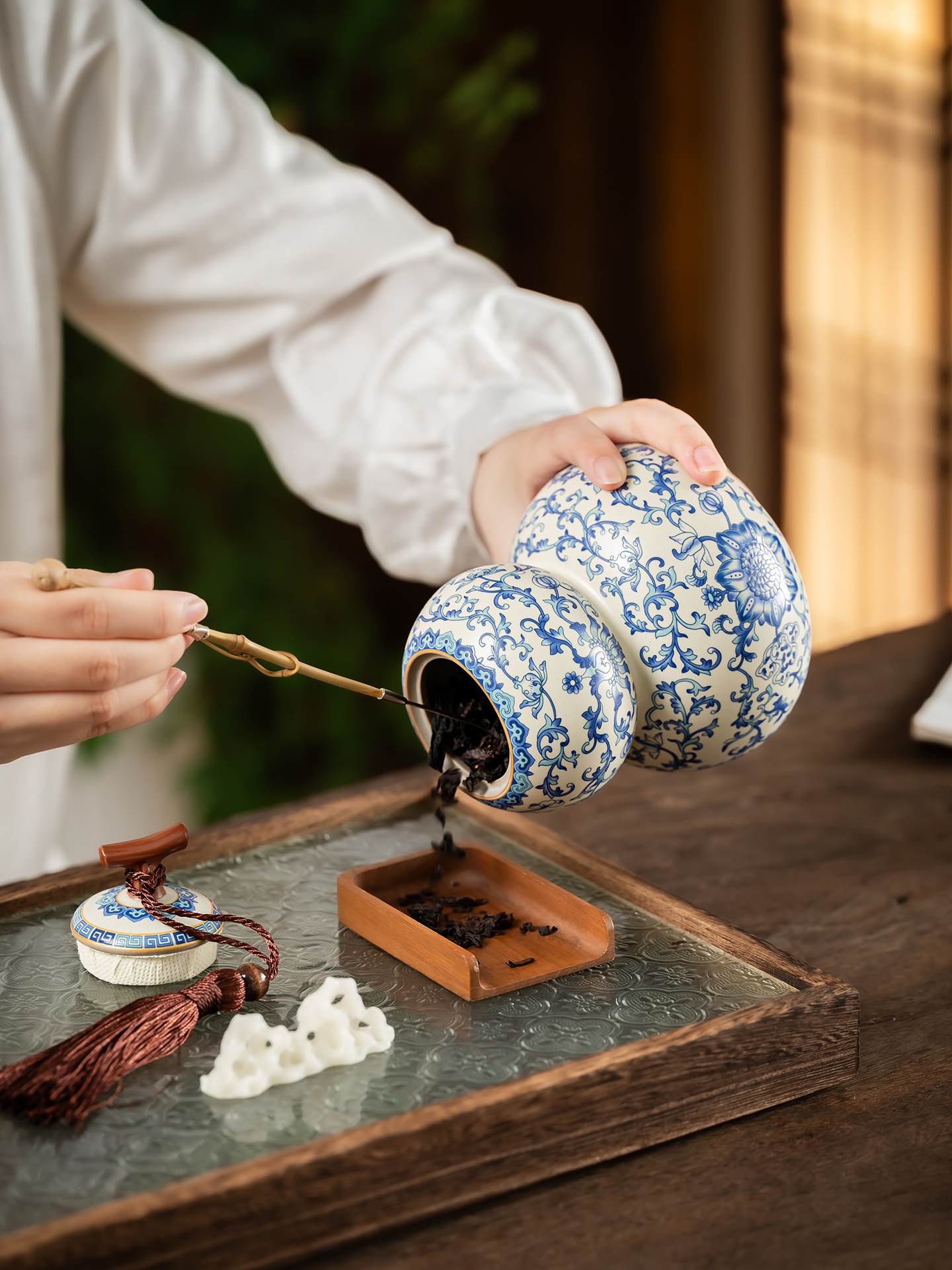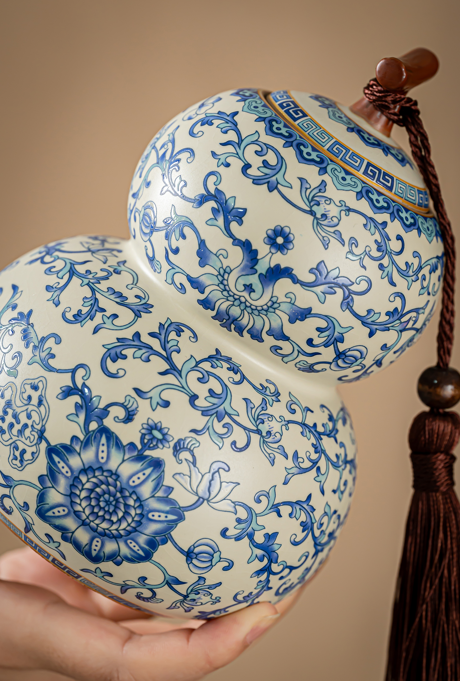 Сине-белая керамическая чайная банка Ru Kiln, большая тыква в стиле ретро, банка для хранения чая, герметичная банка, бытовая банка для хранения чая