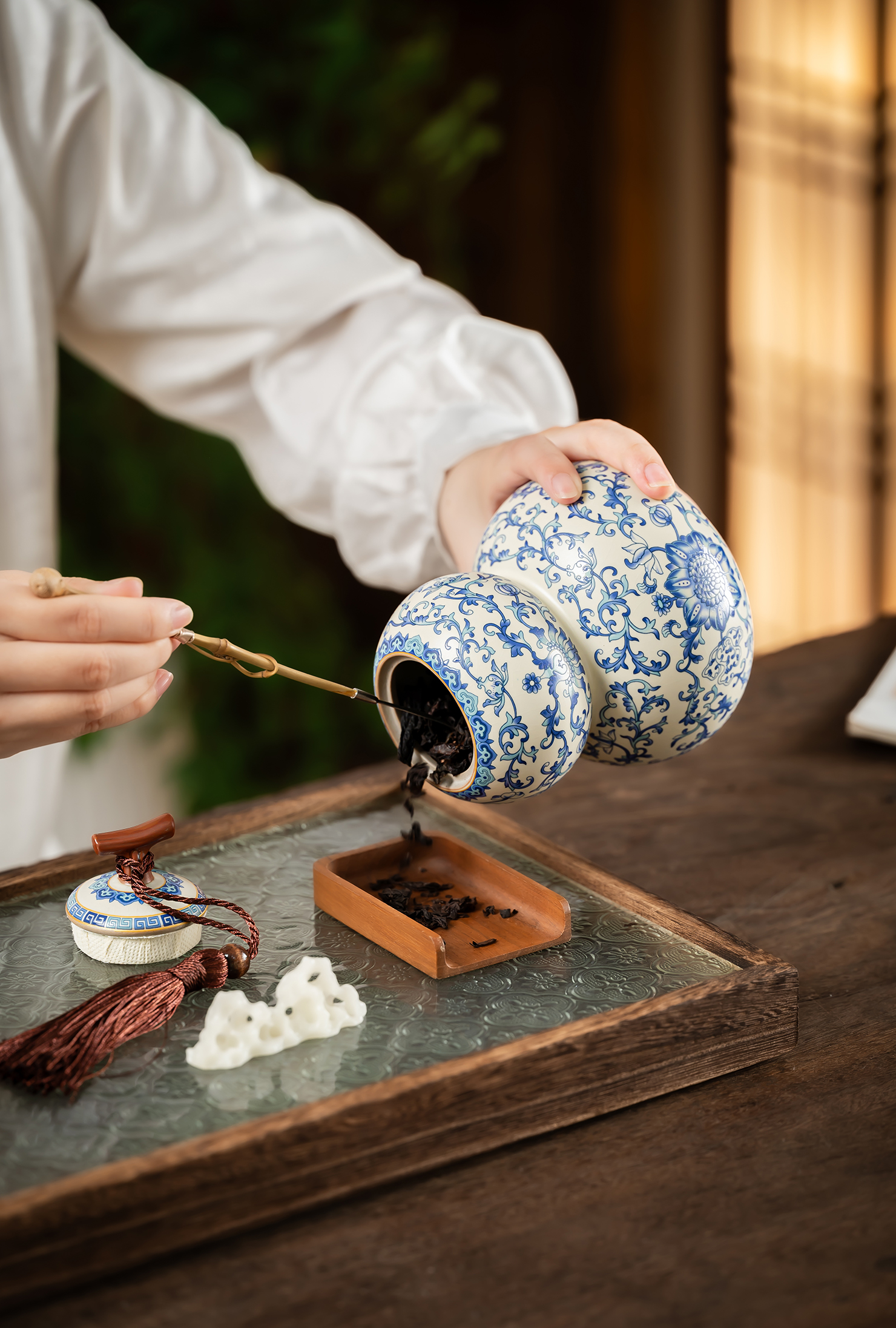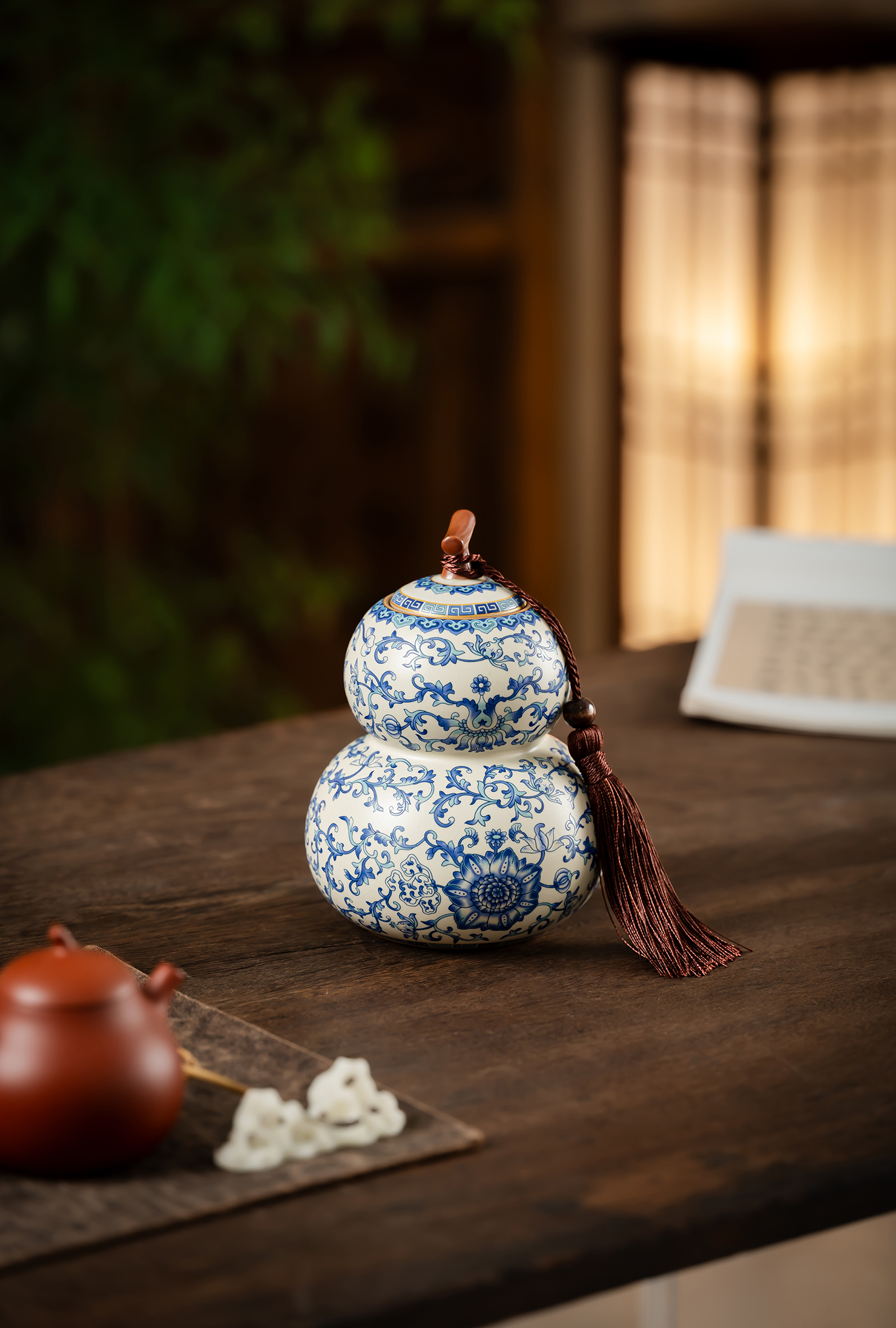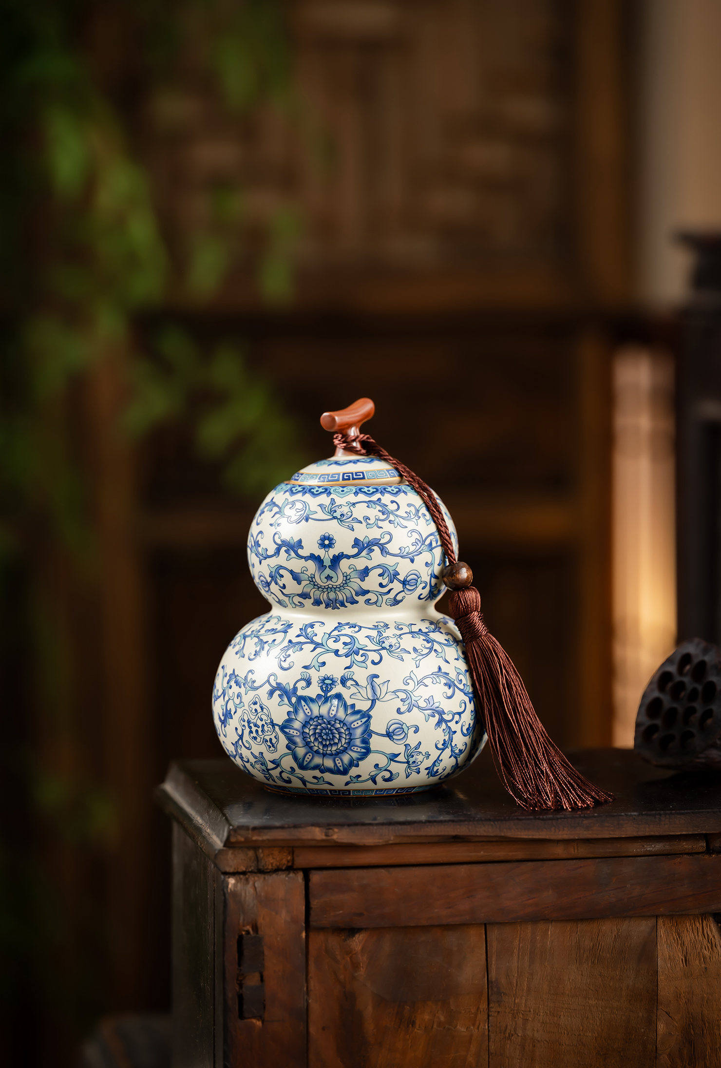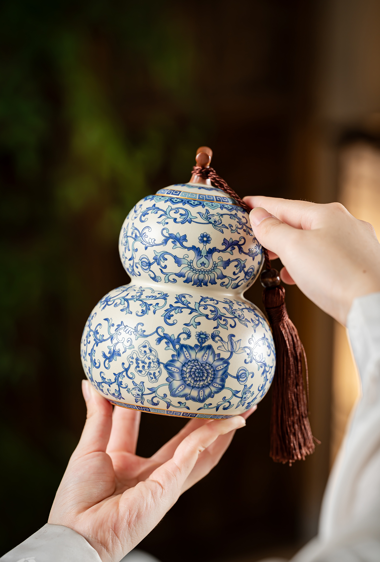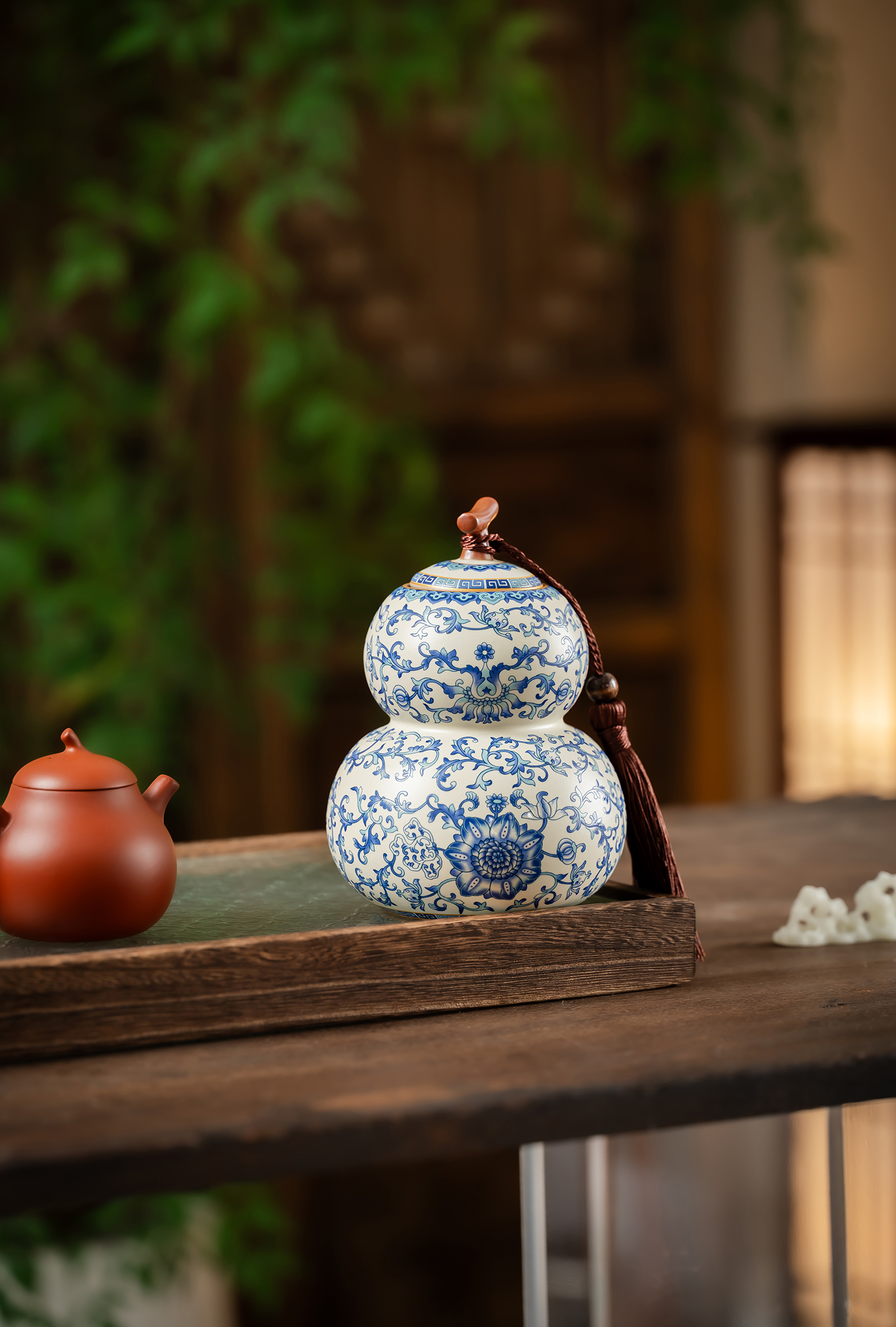 Сине-белая керамическая чайная банка Ru Kiln, большая тыква в стиле ретро, банка для хранения чая, герметичная банка, бытовая банка для хранения чая