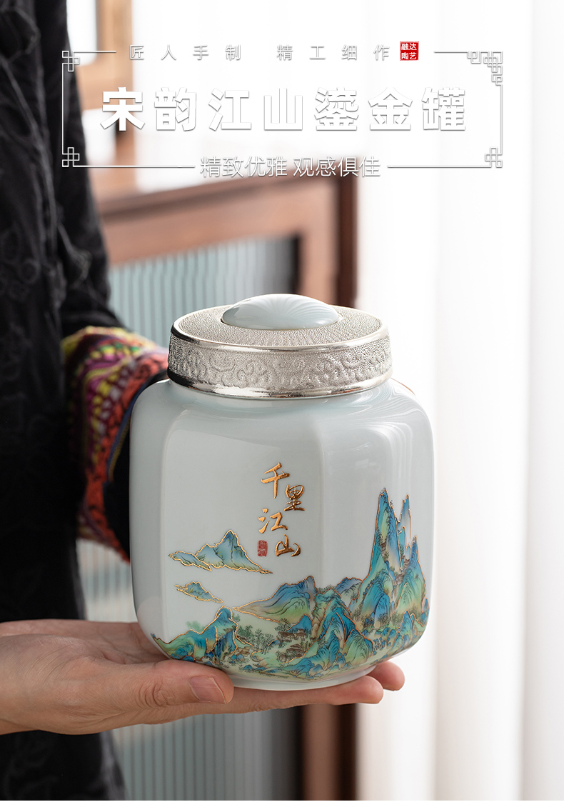 Песня Юн Цзяншань Позолоченная банка-Тяньцин; Позолоченная банка Song Yun Jiangshan - нефритового цвета; Позолоченная банка Сун Юнь Цзяншань-Юнянь; Банка для трансформации печи Янцзы Цзяншань