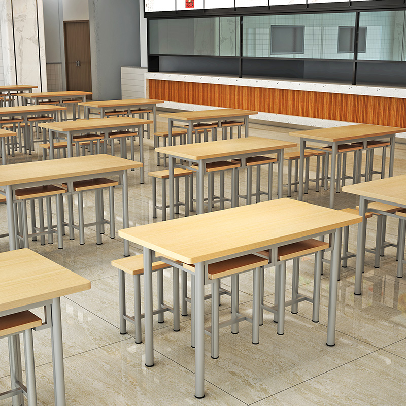 Комбинация обеденного стола и стула для заводской столовой на 4 человека, 6 человек, 8 человек, подвесной табурет, простой прямоугольный обеденный стол, обеденный стол и стулья для быстрого питания в отеле.