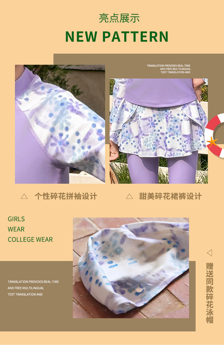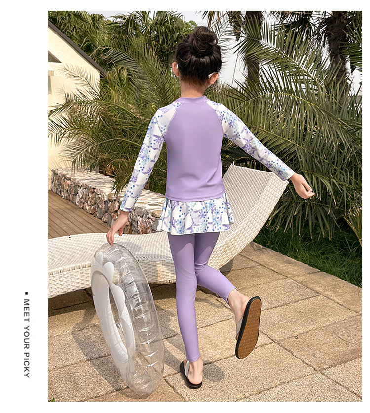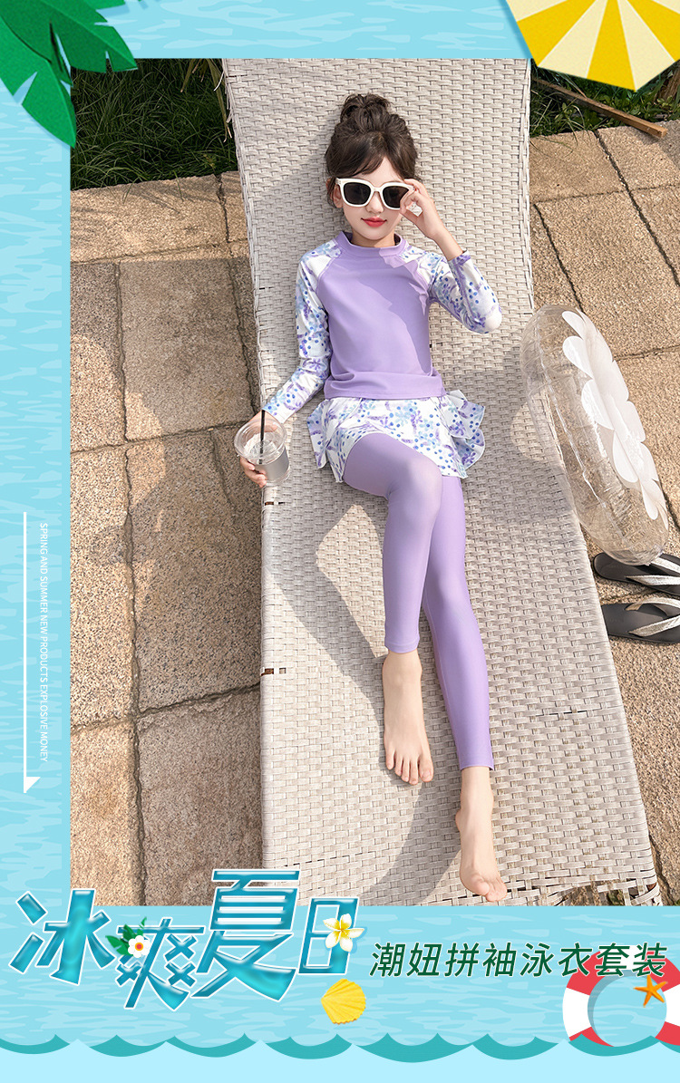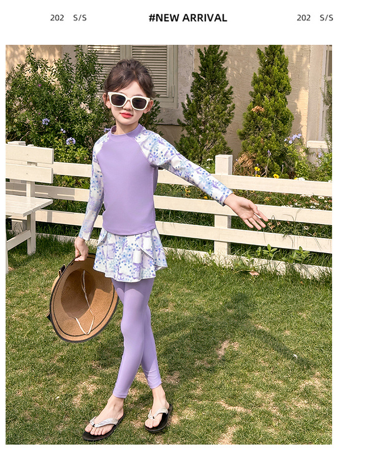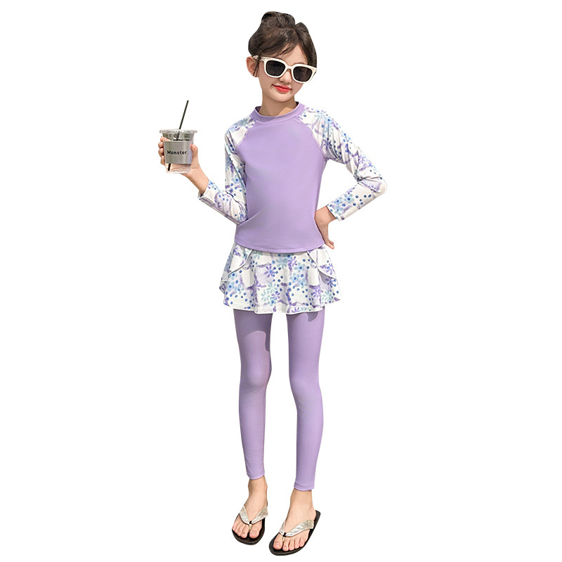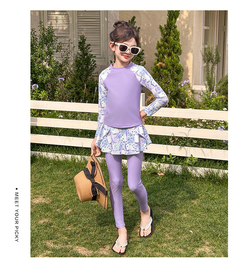 Детский купальник для девочек, защита от солнца, новый стиль 2025 года для старших детей, раздельный купальник с юбкой.