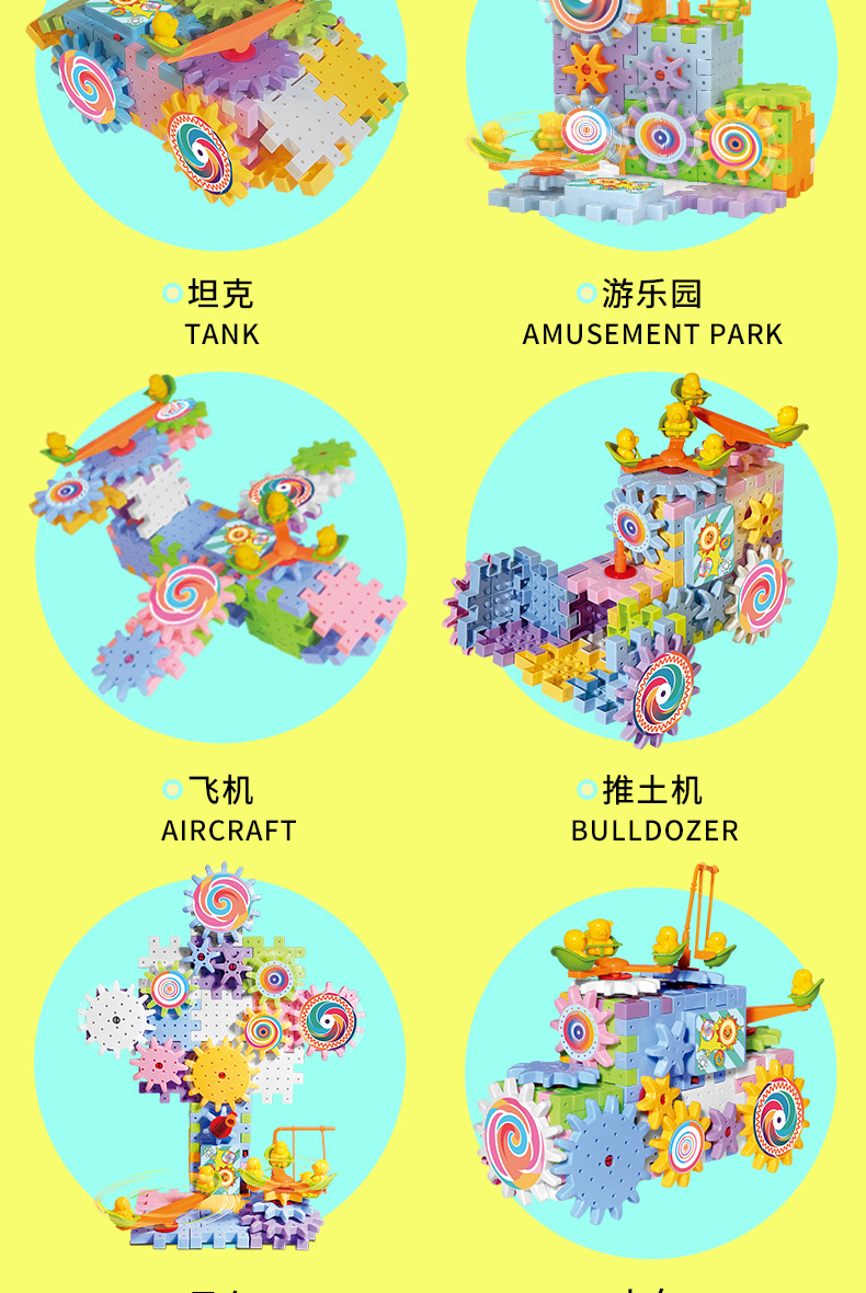 Детские постоянно меняющиеся электрические строительные блоки, собранные образовательные вращающиеся шестерни с крупными частицами, механический набор для раннего образования для мальчиков, игрушка в сборе