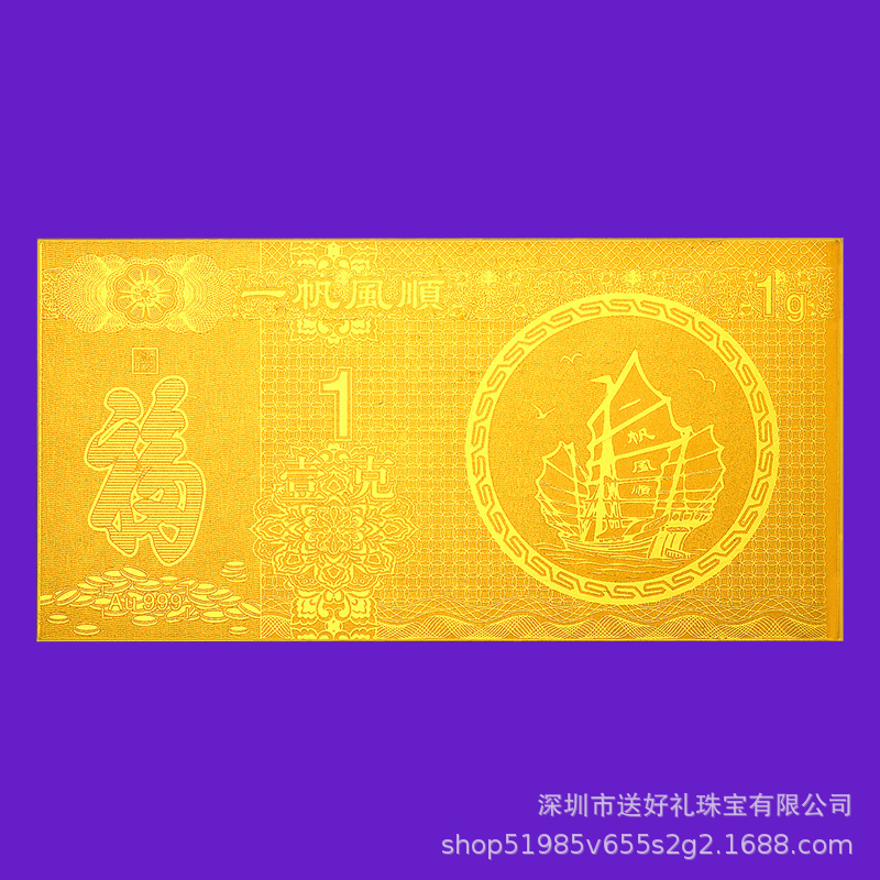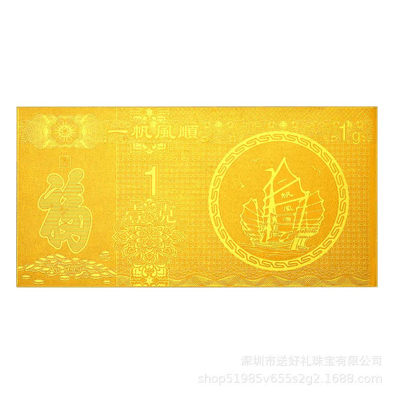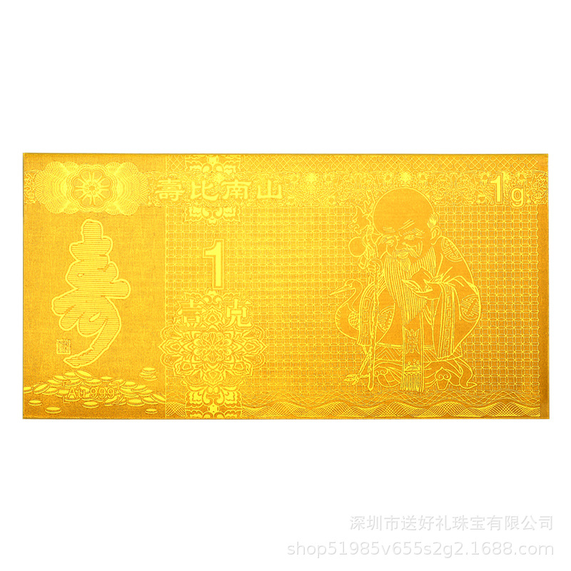 Оптовые памятные золотые банкноты от Shoubi Nanshan, подарки для благодарности, памятные золотые банкноты, чистое золото 999 пробы, масляно-прессованные золотые банкноты, 1 грамм.