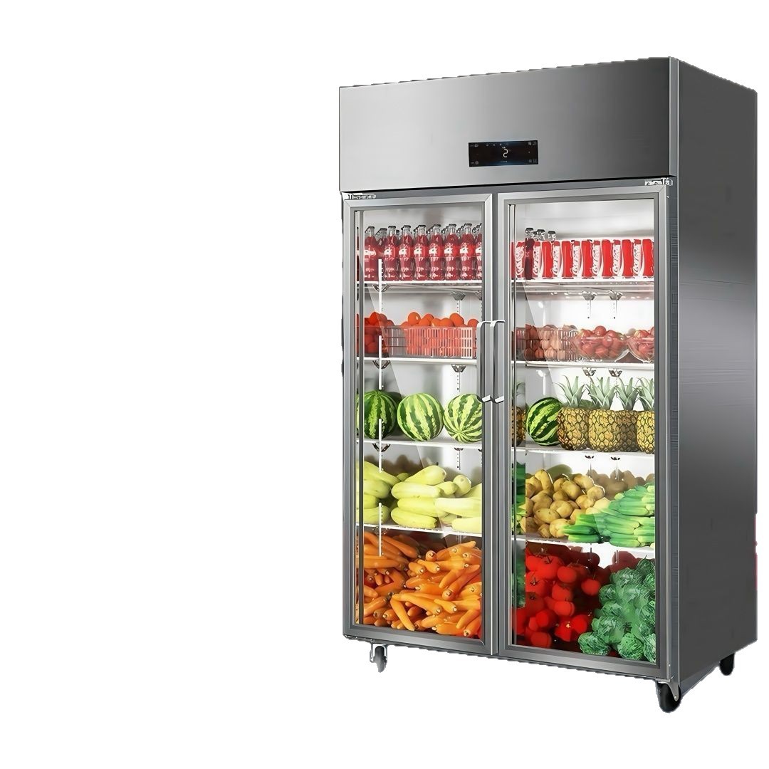 Шкаф для хранения овощей, вертикальный холодильный супермаркет, коммерческий двухдверный трехдверный витринный шкаф для овощей и фруктов, шкаф для заказа барбекю