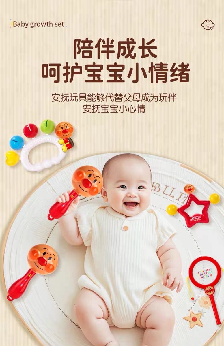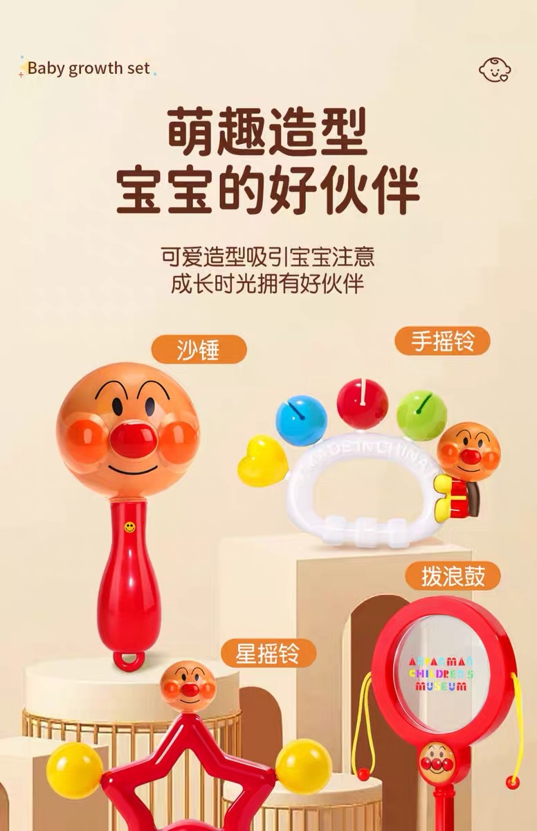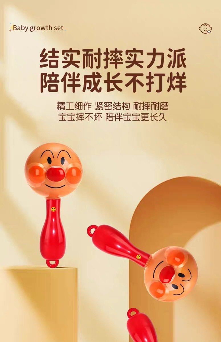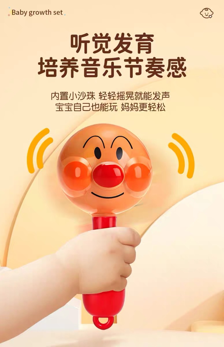 Ручная погремушка, песочный молоток, детский подарок Anpanman 2, успокаивающая игрушка-погремушка, которую ребенок может жевать в руках от 0 до 1 года 3