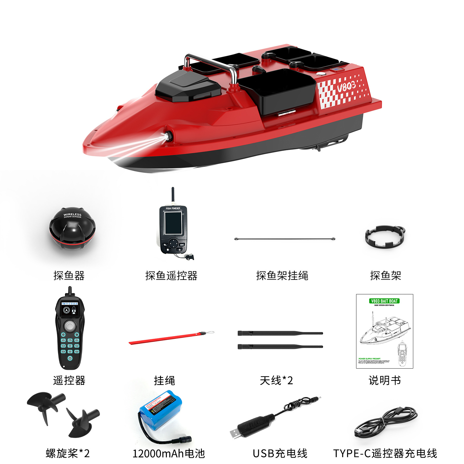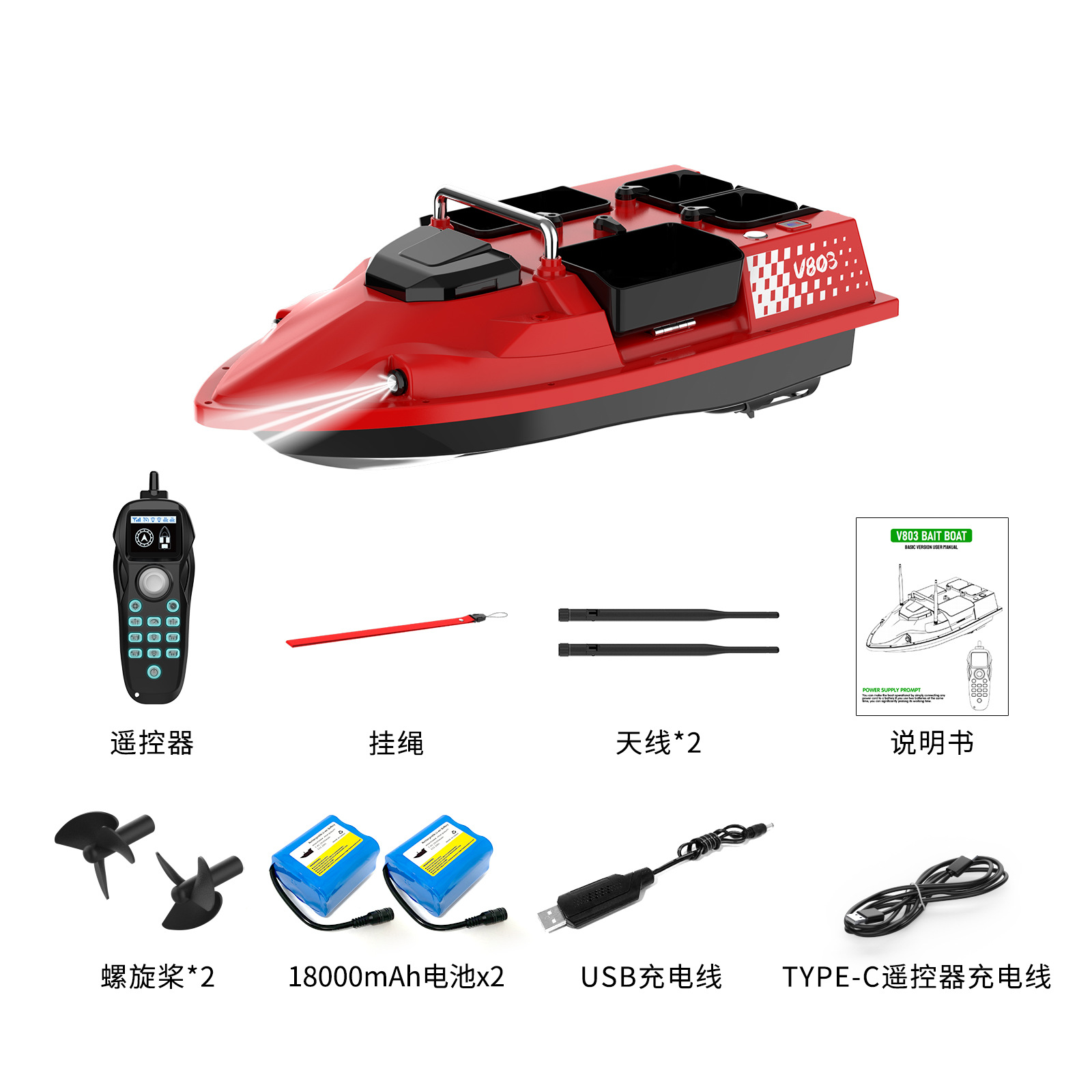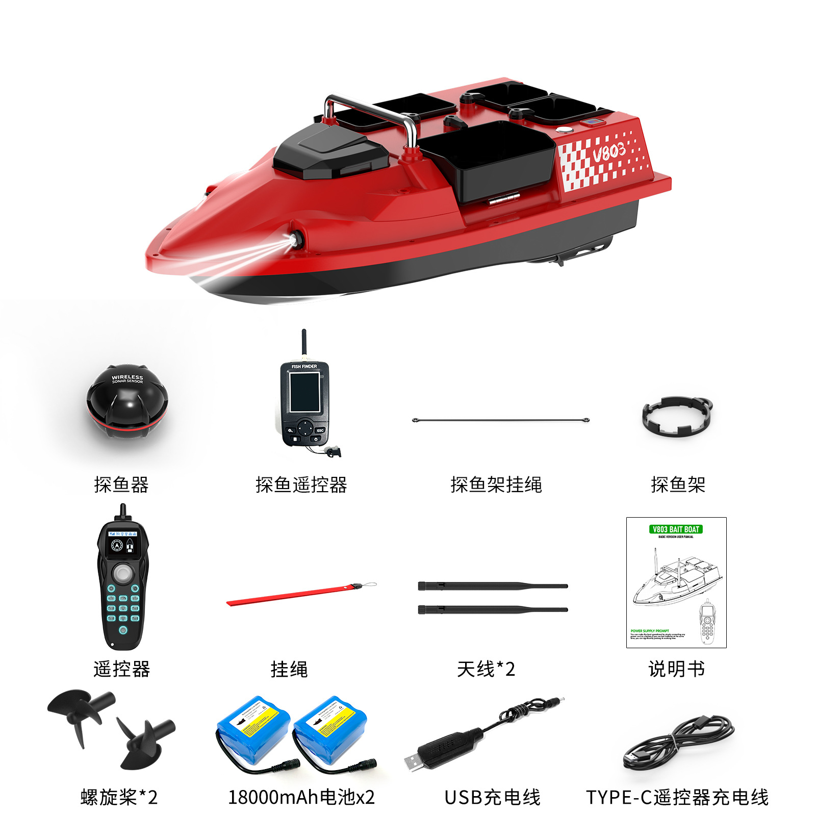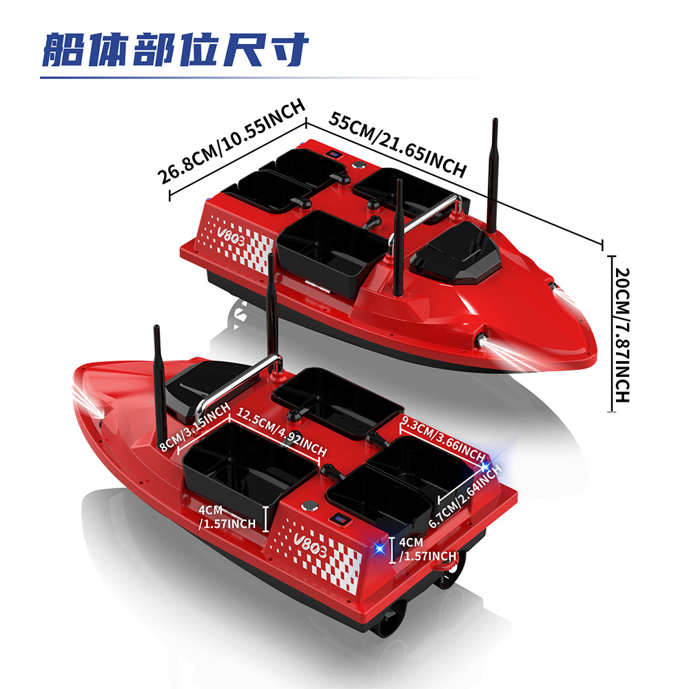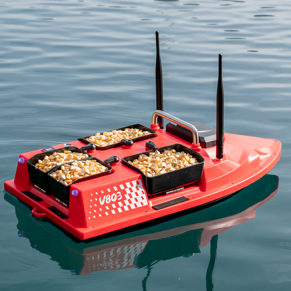 V803, четырехсекционная умная лодка для рыболовной приманки с двумя антеннами, лодка с дистанционным управлением, электрическая лодка для доставки приманки, доставка лески, длительное время автономной работы