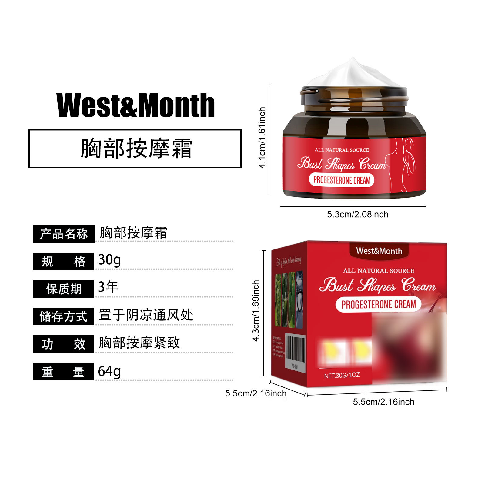 [Доставка в течение 48 часов] West&Month Крем для массажа груди Женский крем для ухода за грудью Упругий и пухлый