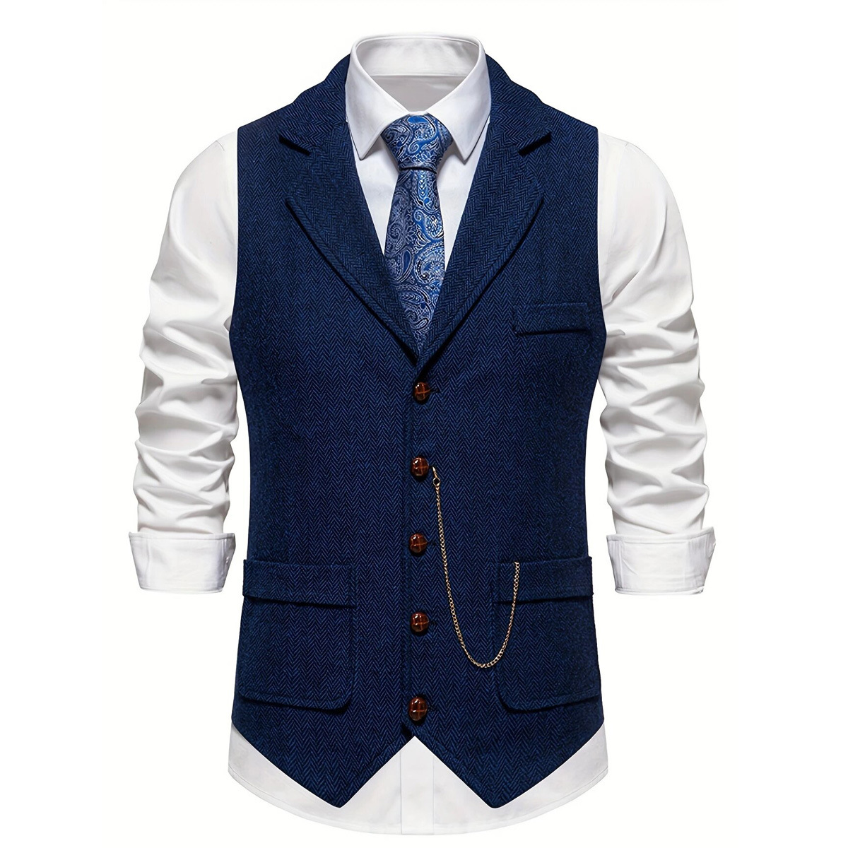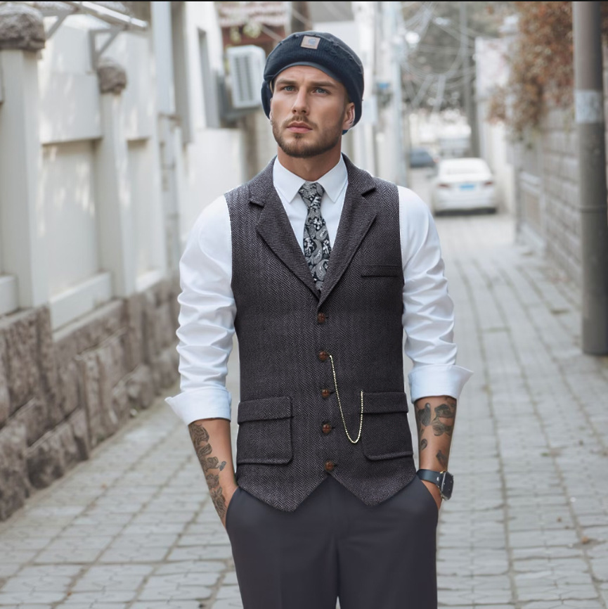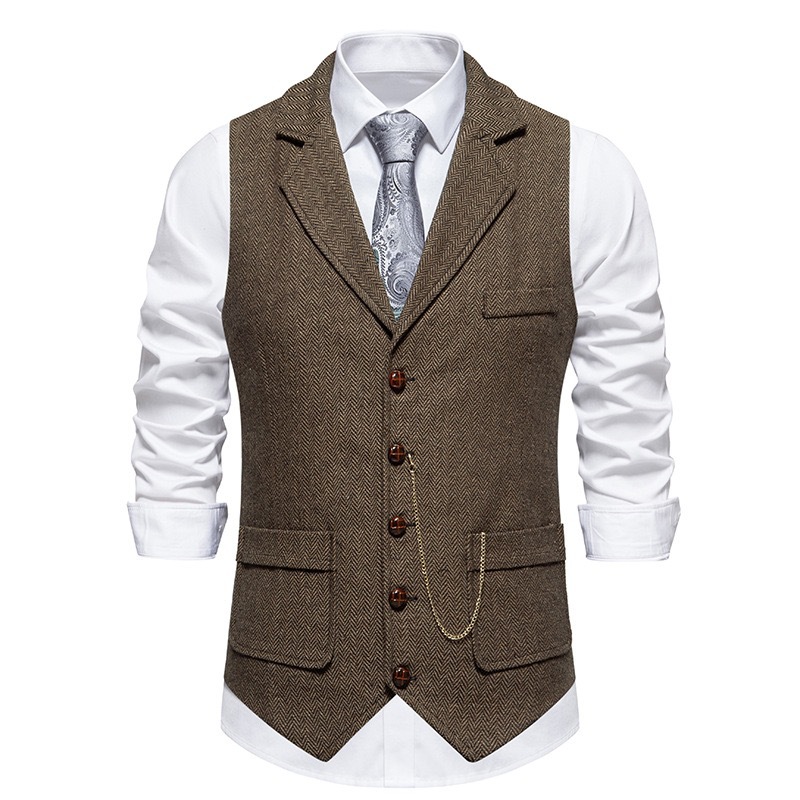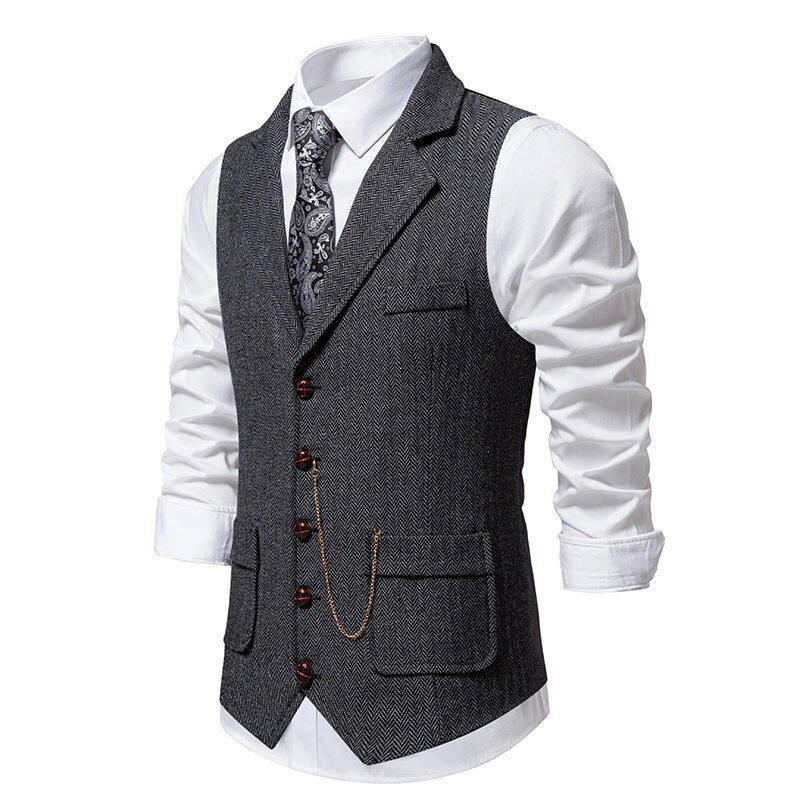 Новый мужской твидовый жилет европейского размера с декором в виде цепочки и узором "ёлочка", ретро стиль, для внешней торговли