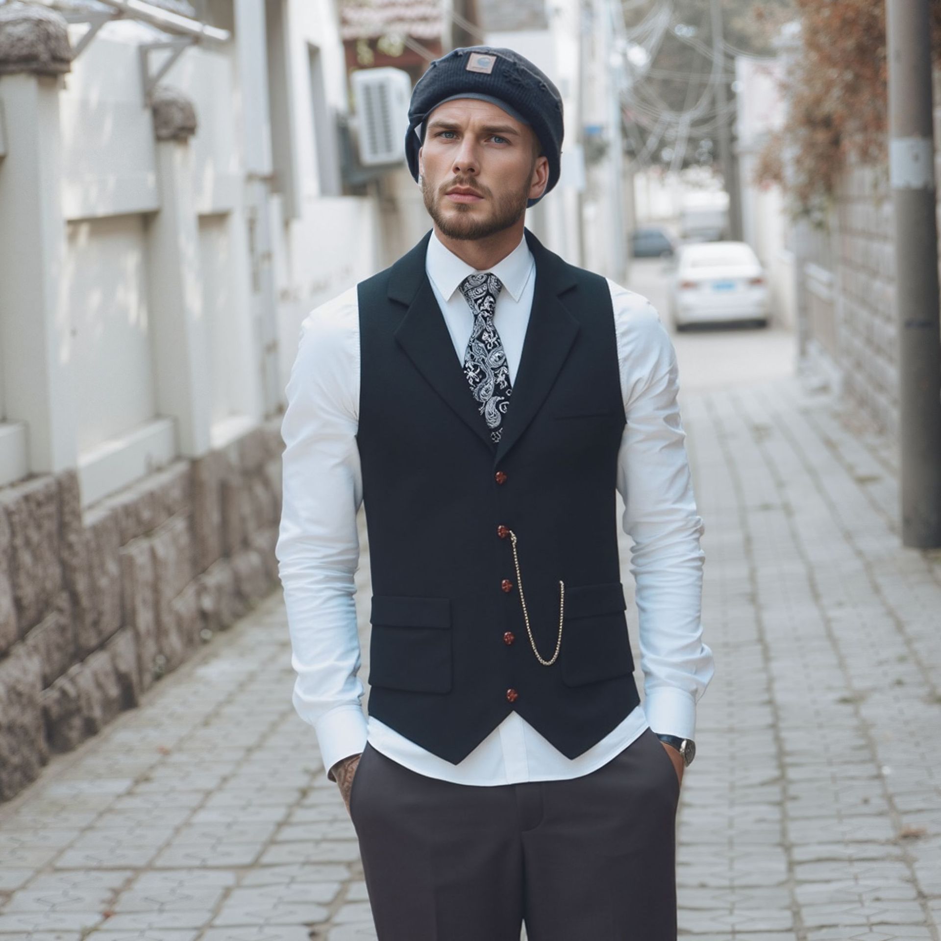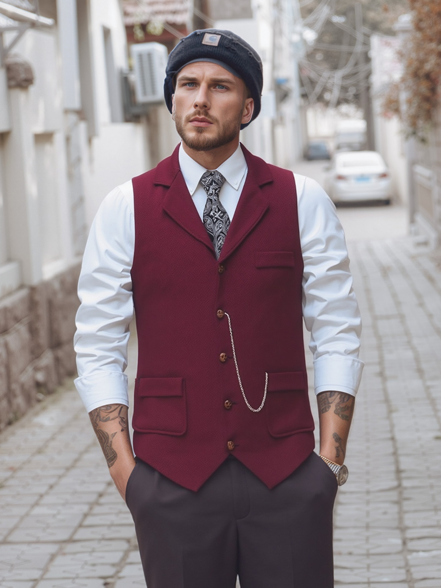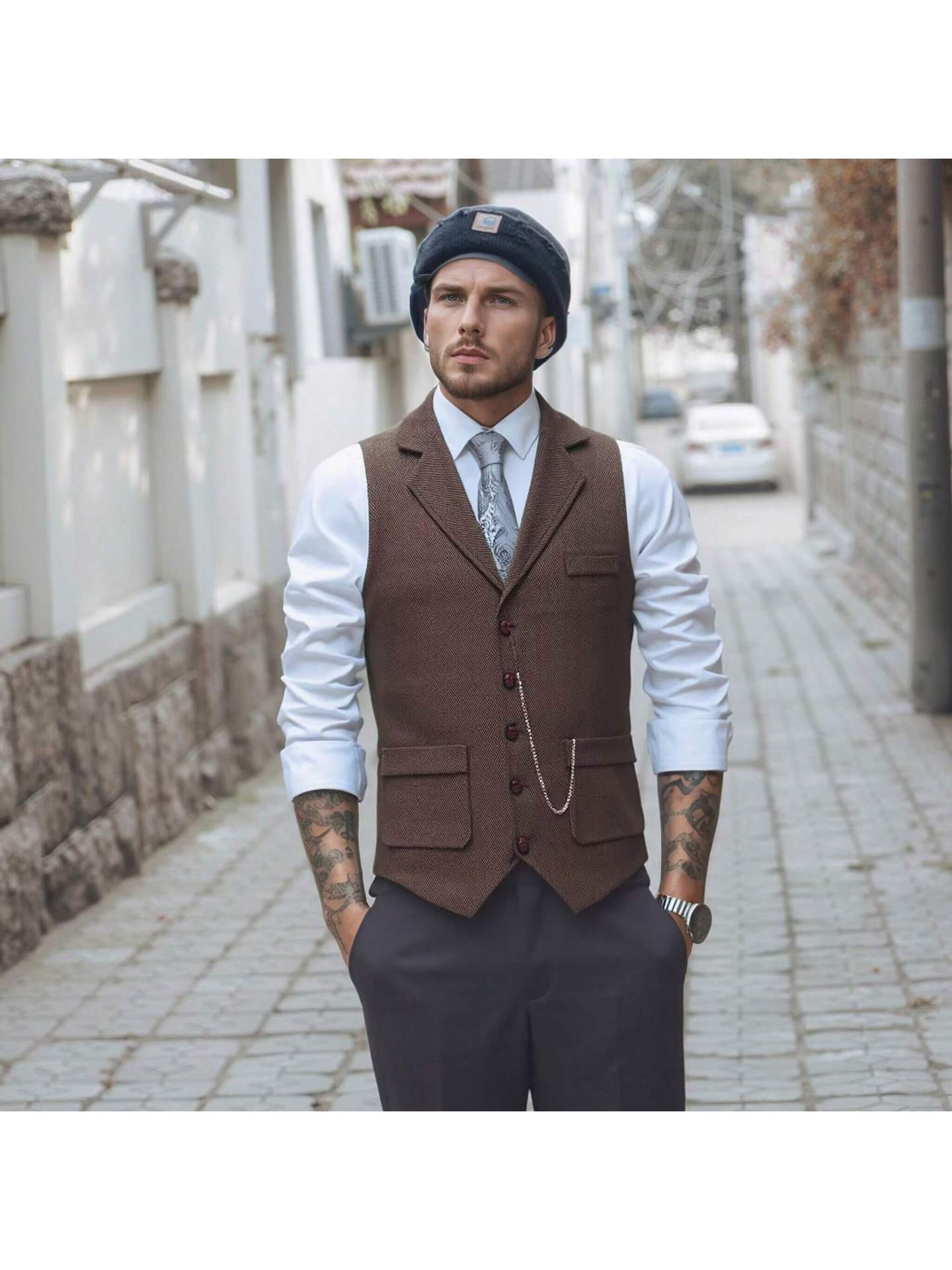 Новый мужской твидовый жилет европейского размера с декором в виде цепочки и узором "ёлочка", ретро стиль, для внешней торговли