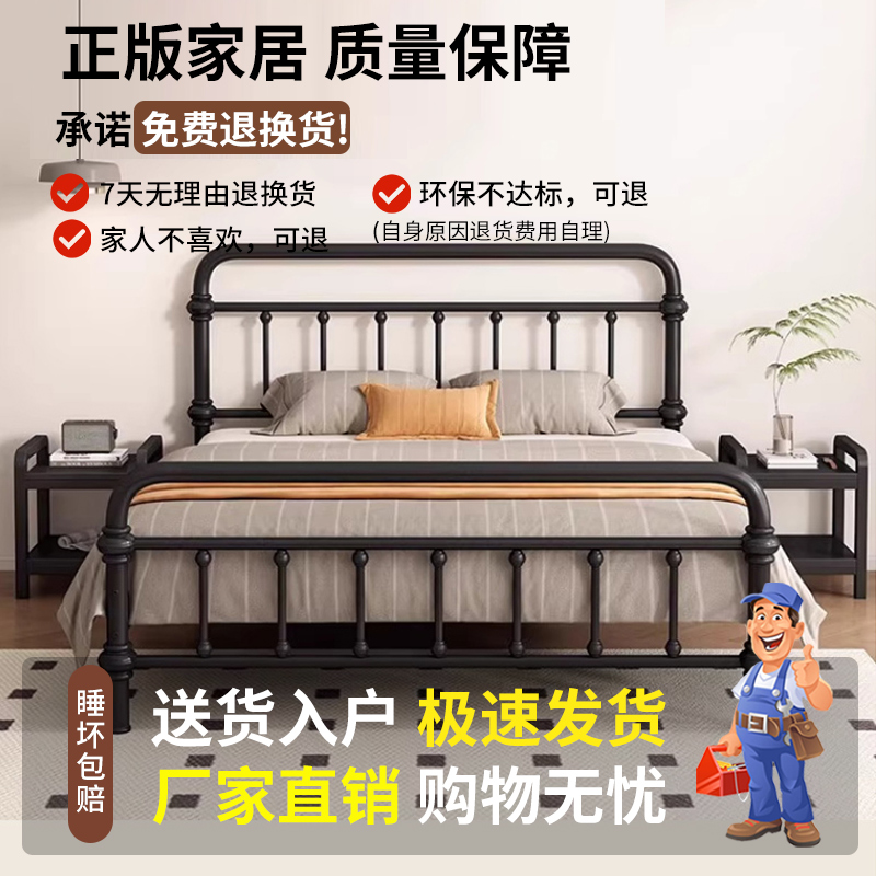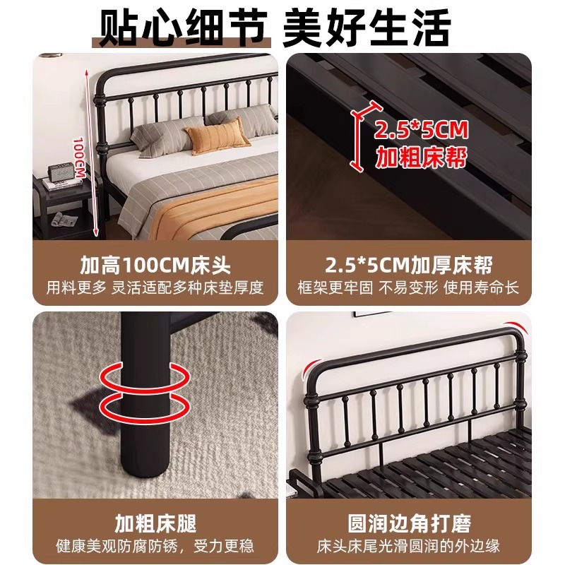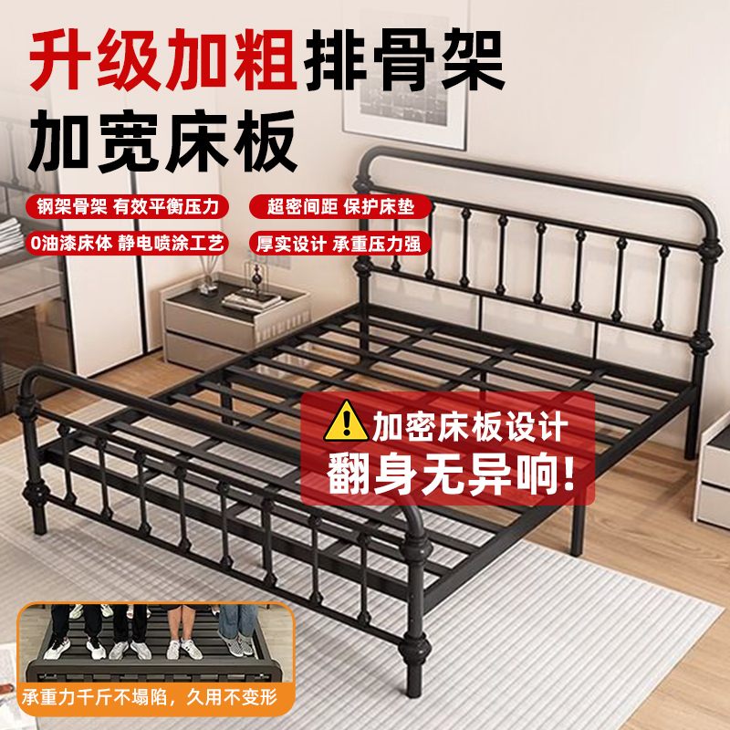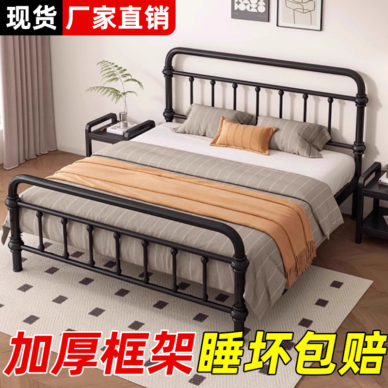 Кованая кровать двуспальная кровать 1.8m простая кровать со стальным каркасом для арендной комнаты 1.5m железная кровать утолщенная односпальная кровать с железным каркасом
