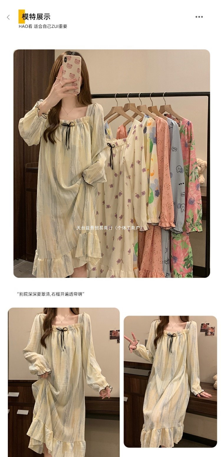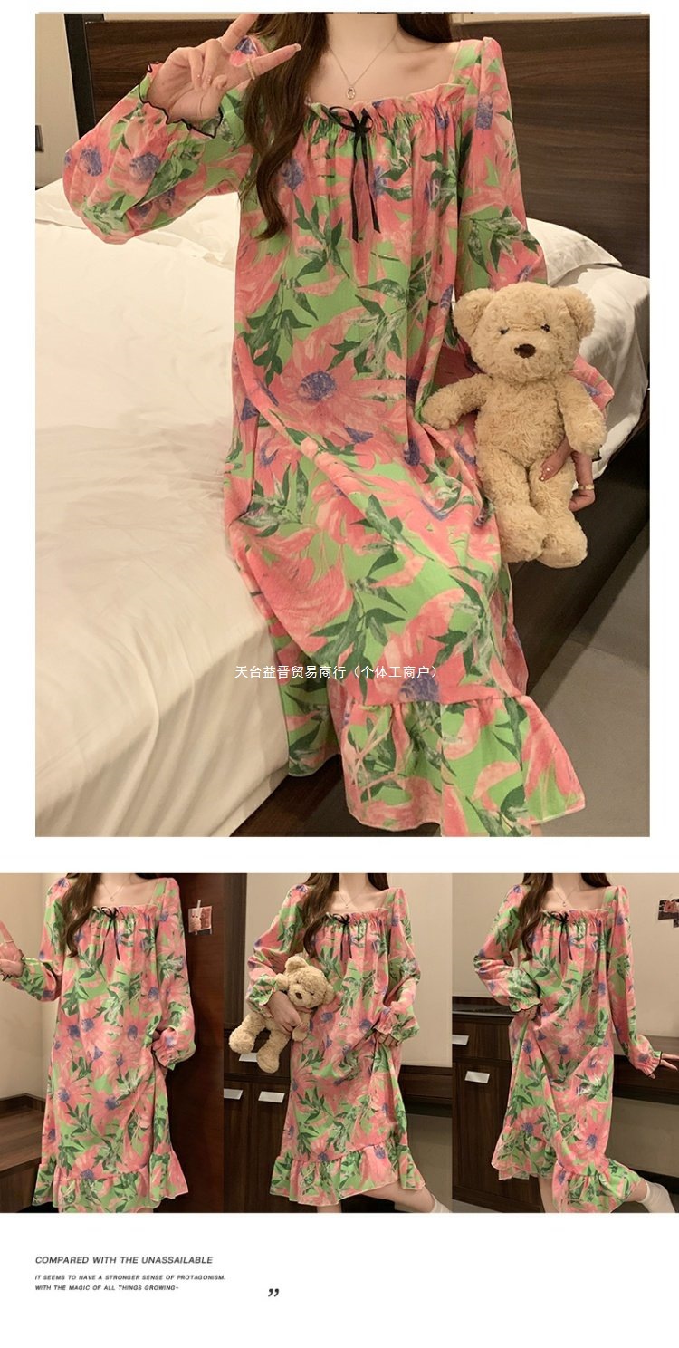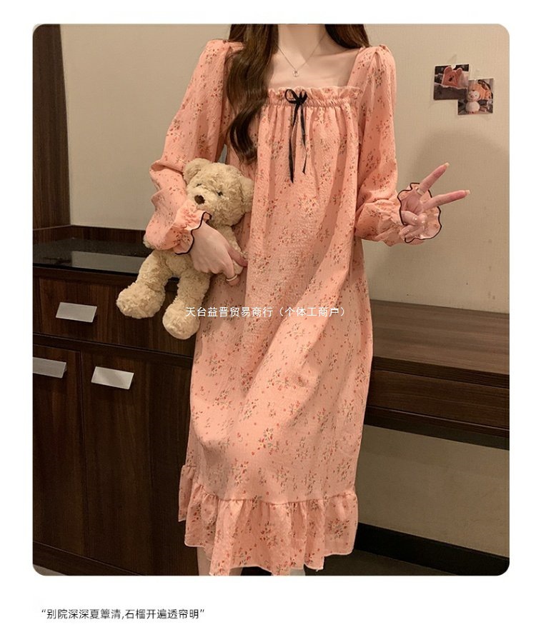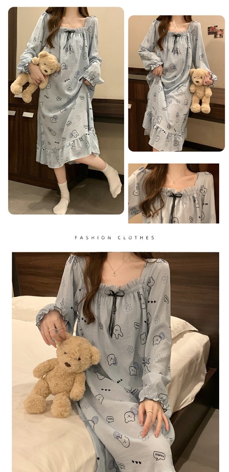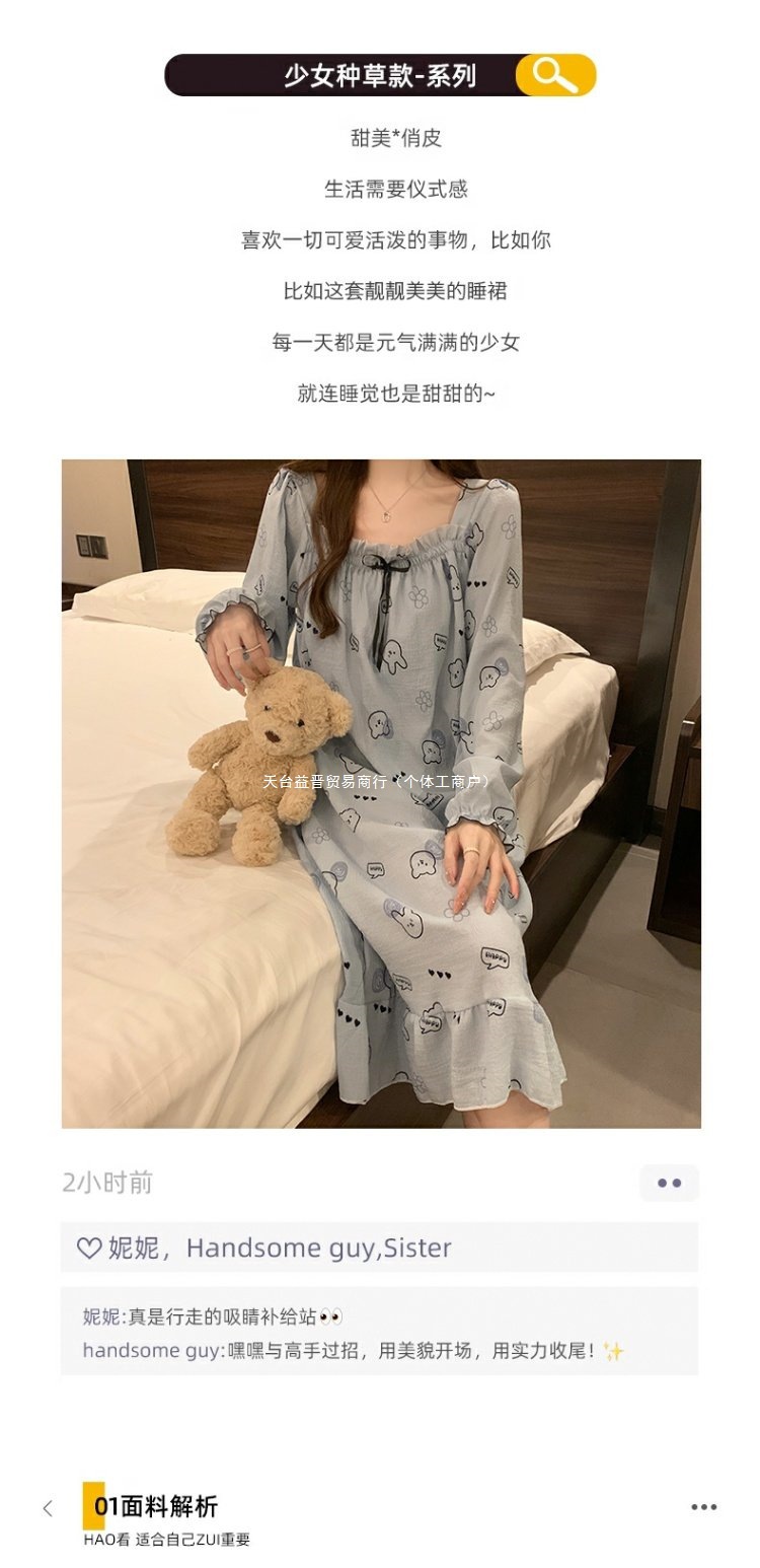Ночная рубашка в стиле принцессы, пижамы для женщин из чистого хлопка, весенне-осенняя одежда с длинными рукавами и нагрудными подушечками, милая полосатая домашняя одежда средней длины