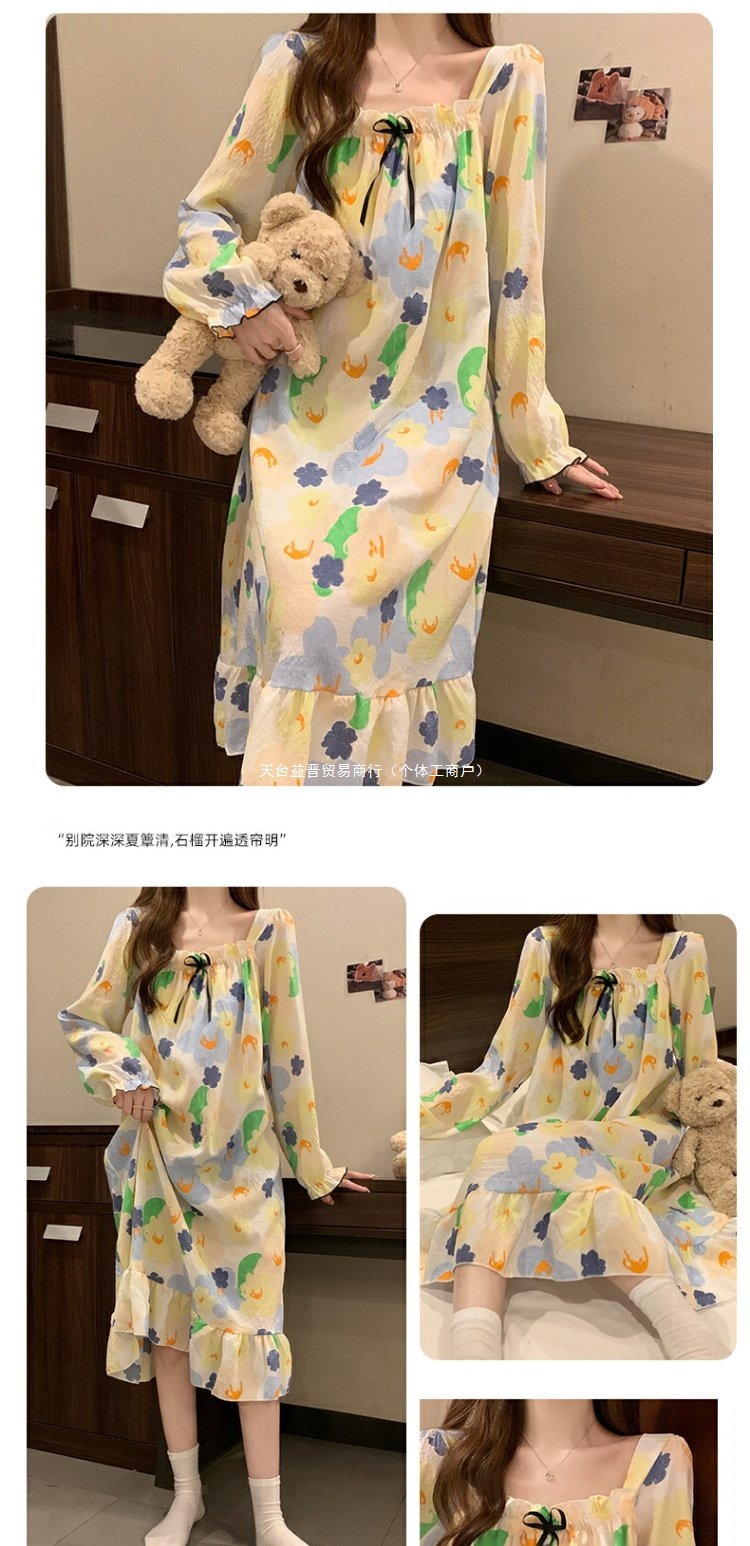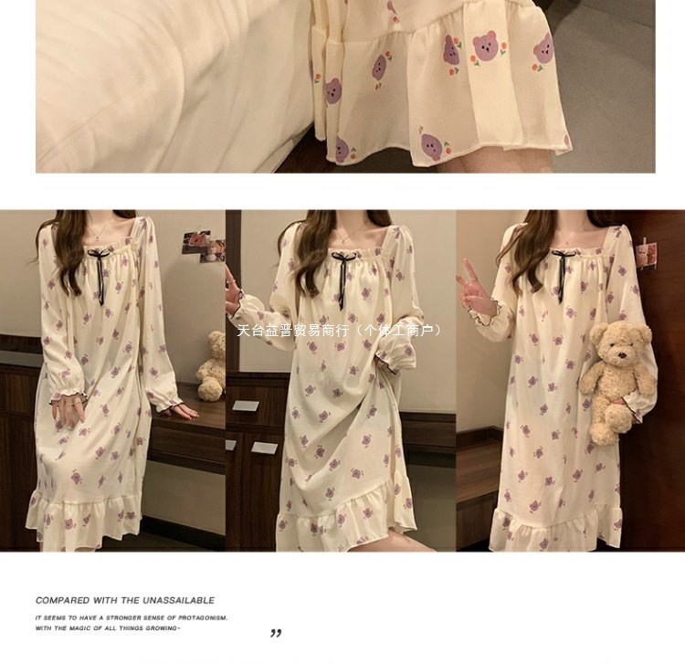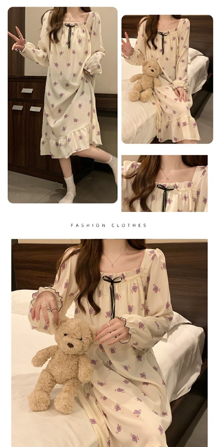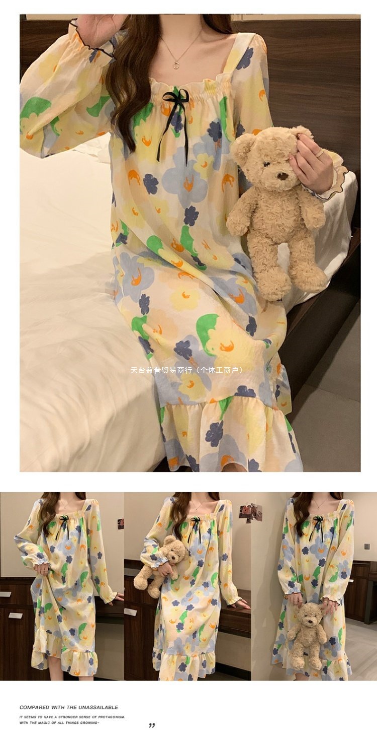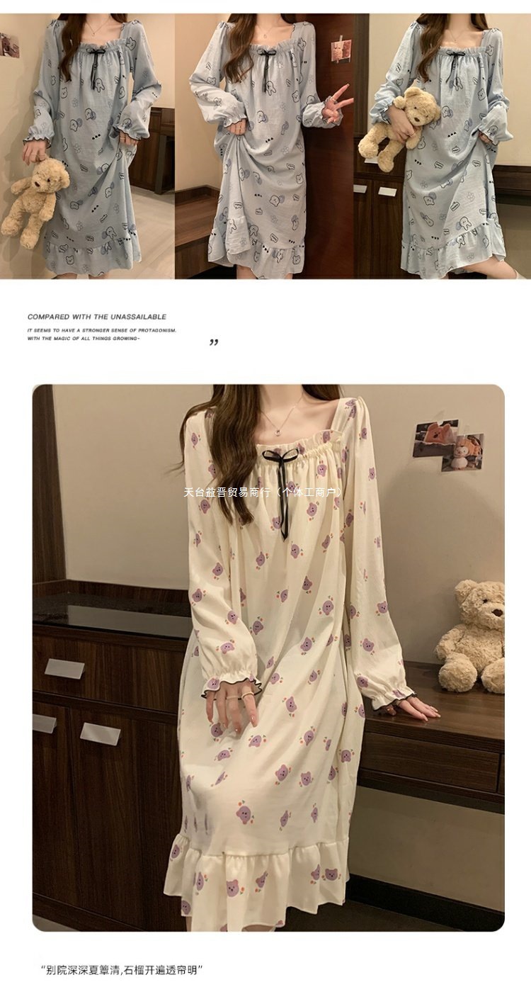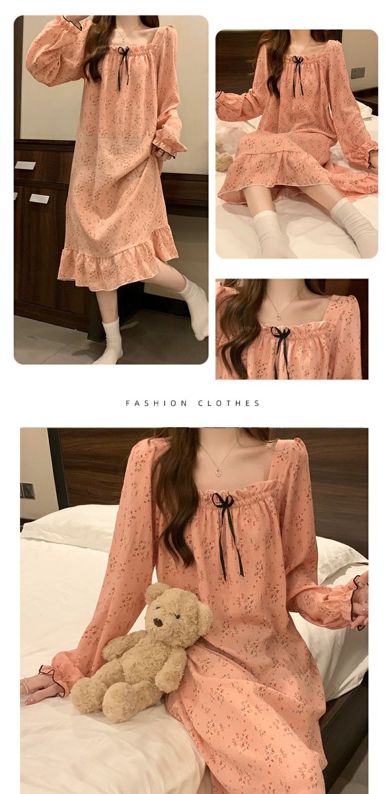Ночная рубашка в стиле принцессы, пижамы для женщин из чистого хлопка, весенне-осенняя одежда с длинными рукавами и нагрудными подушечками, милая полосатая домашняя одежда средней длины