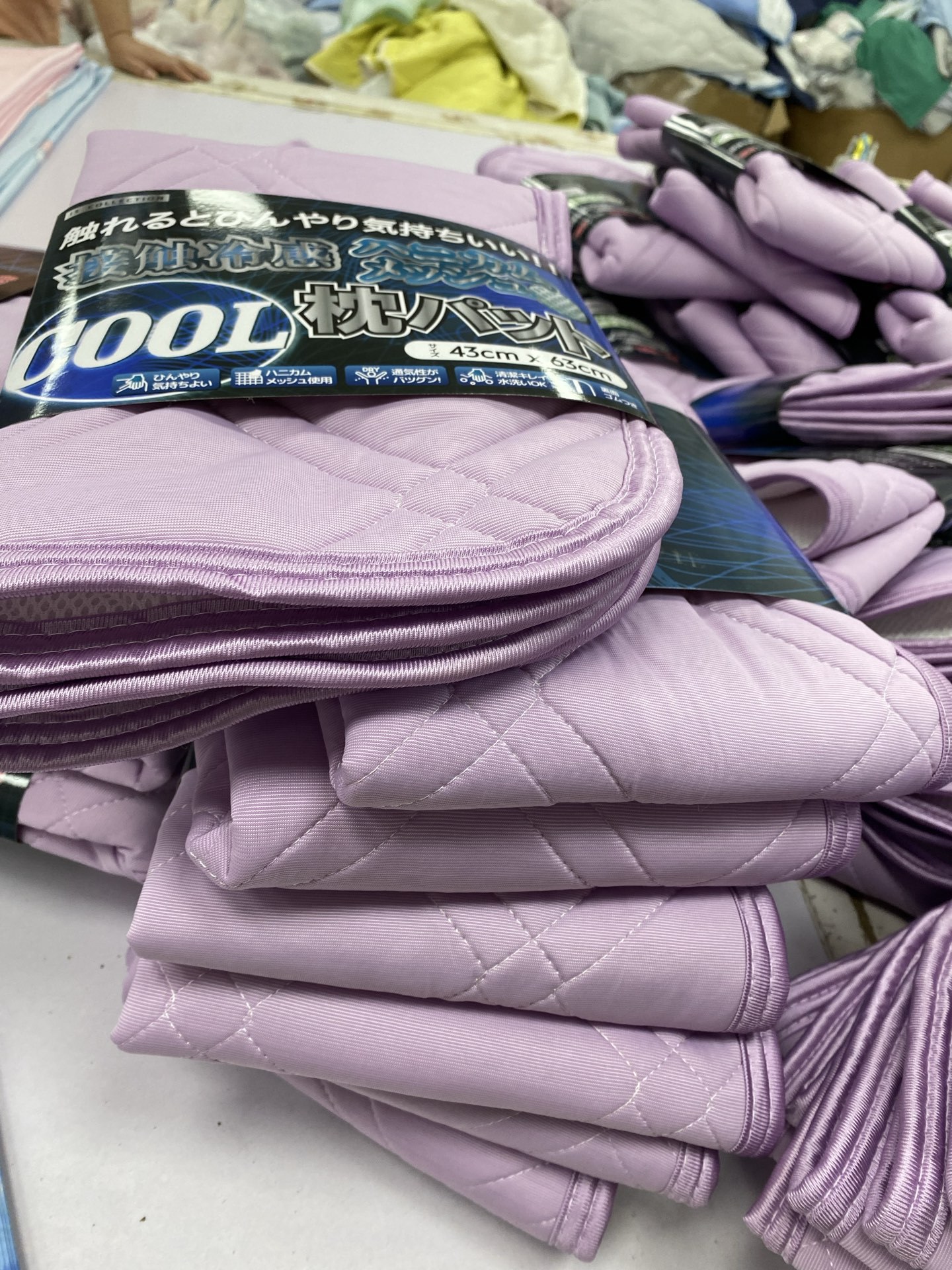 出口日本外贸原单冷感枕垫,这个颜色冷感好,尺寸43*63,背面三明治网眼面料透气舒适性好,现货目前数量足,出口订单批次不同洗标可能会有变化介意慎拍
