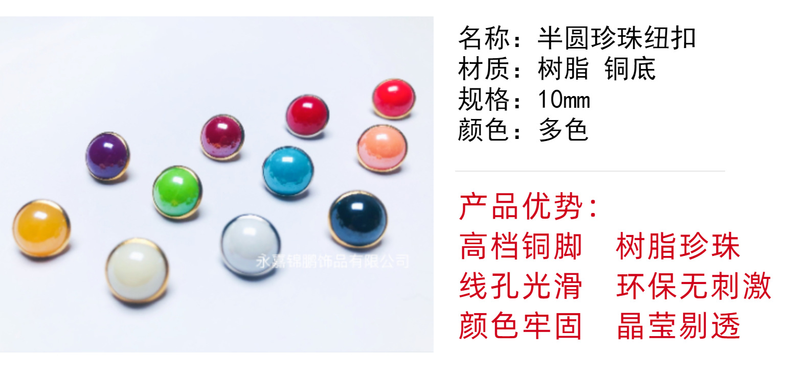 【产品品名】: 半圆纽扣 珍珠纽扣