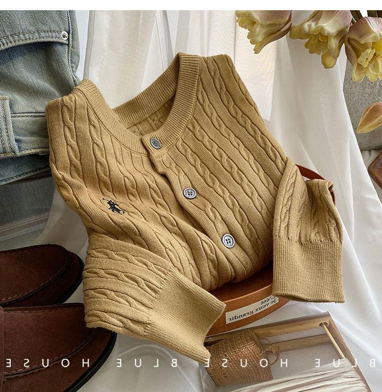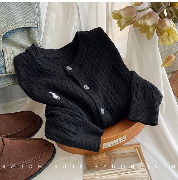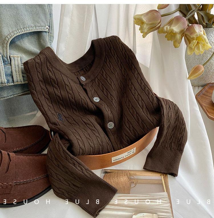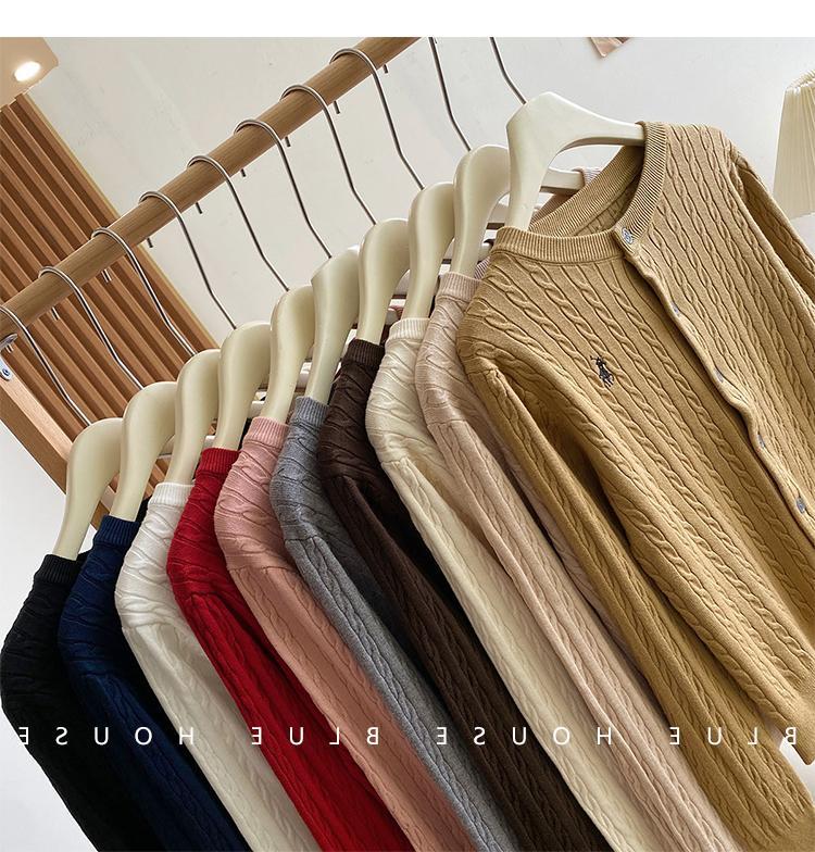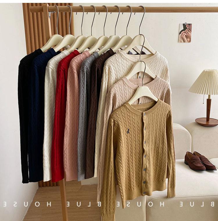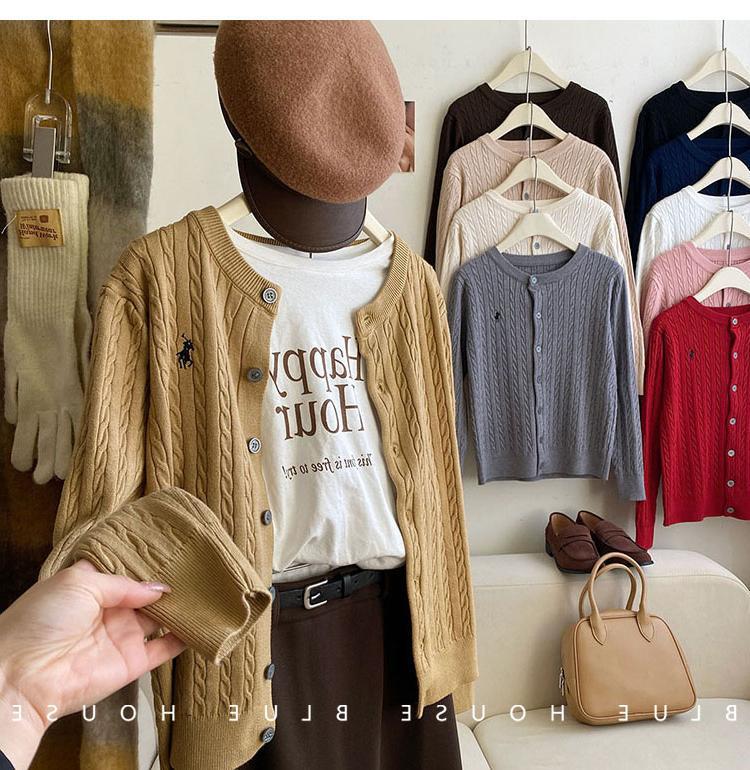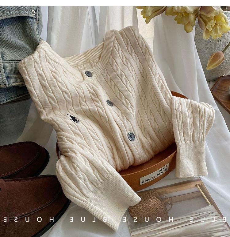 Вязаный кардиган с вышивкой пони, женский осенне-зимний ранний весенний ретро-свитер с круглым вырезом, красный, белый свитер, куртка