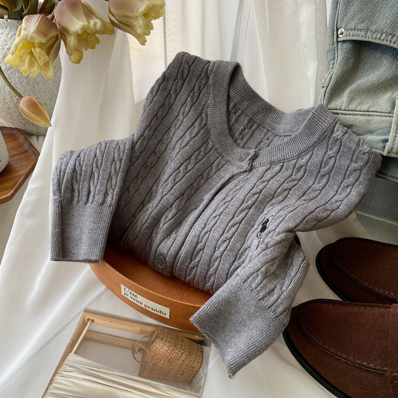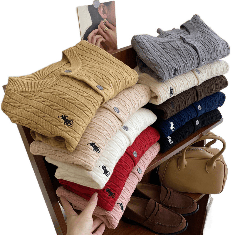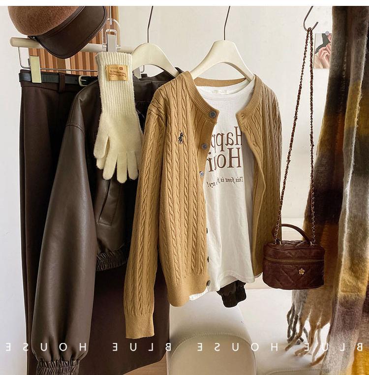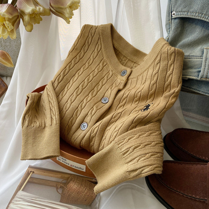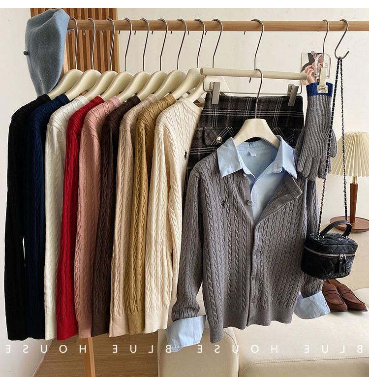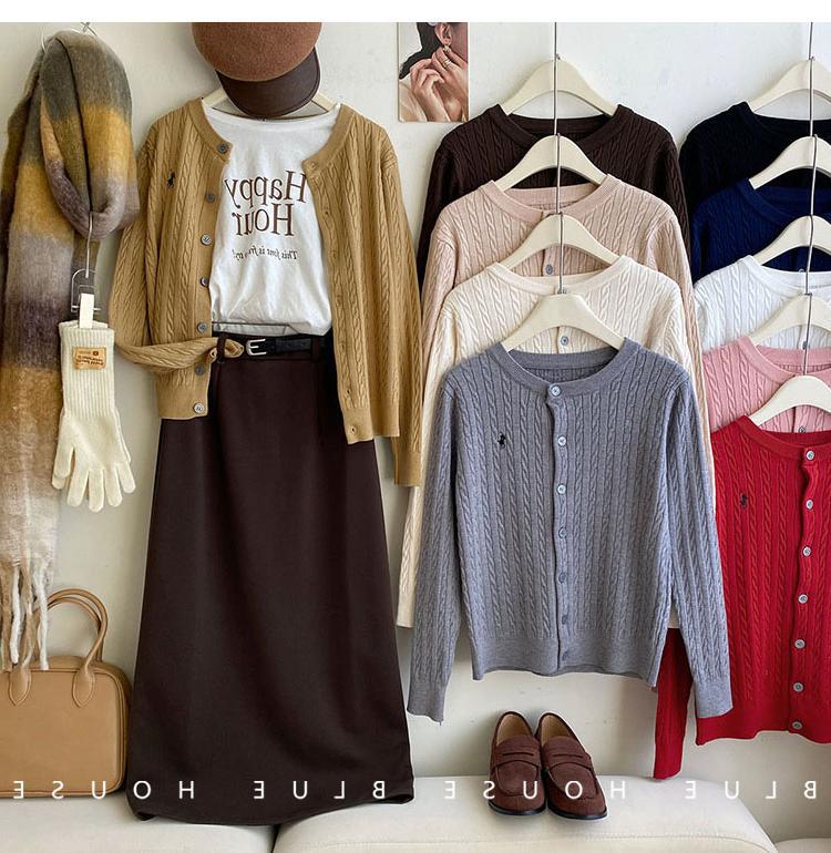 Вязаный кардиган с вышивкой пони, женский осенне-зимний ранний весенний ретро-свитер с круглым вырезом, красный, белый свитер, куртка