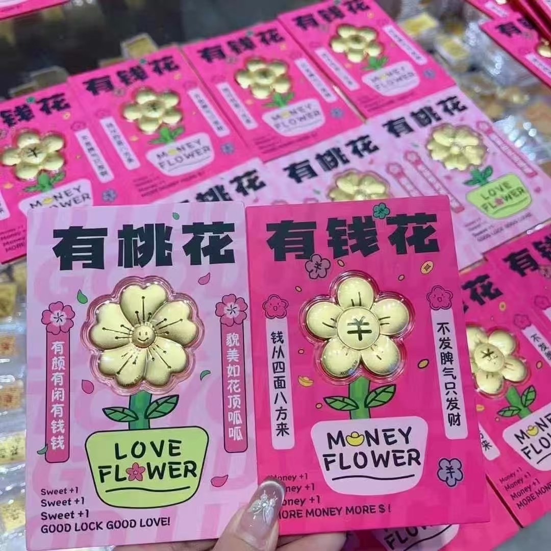 Золотые монеты с красными конвертами в виде цветов персика, украшения из чистого золота 999 пробы, 520 подарков для лучших друзей и девочек.