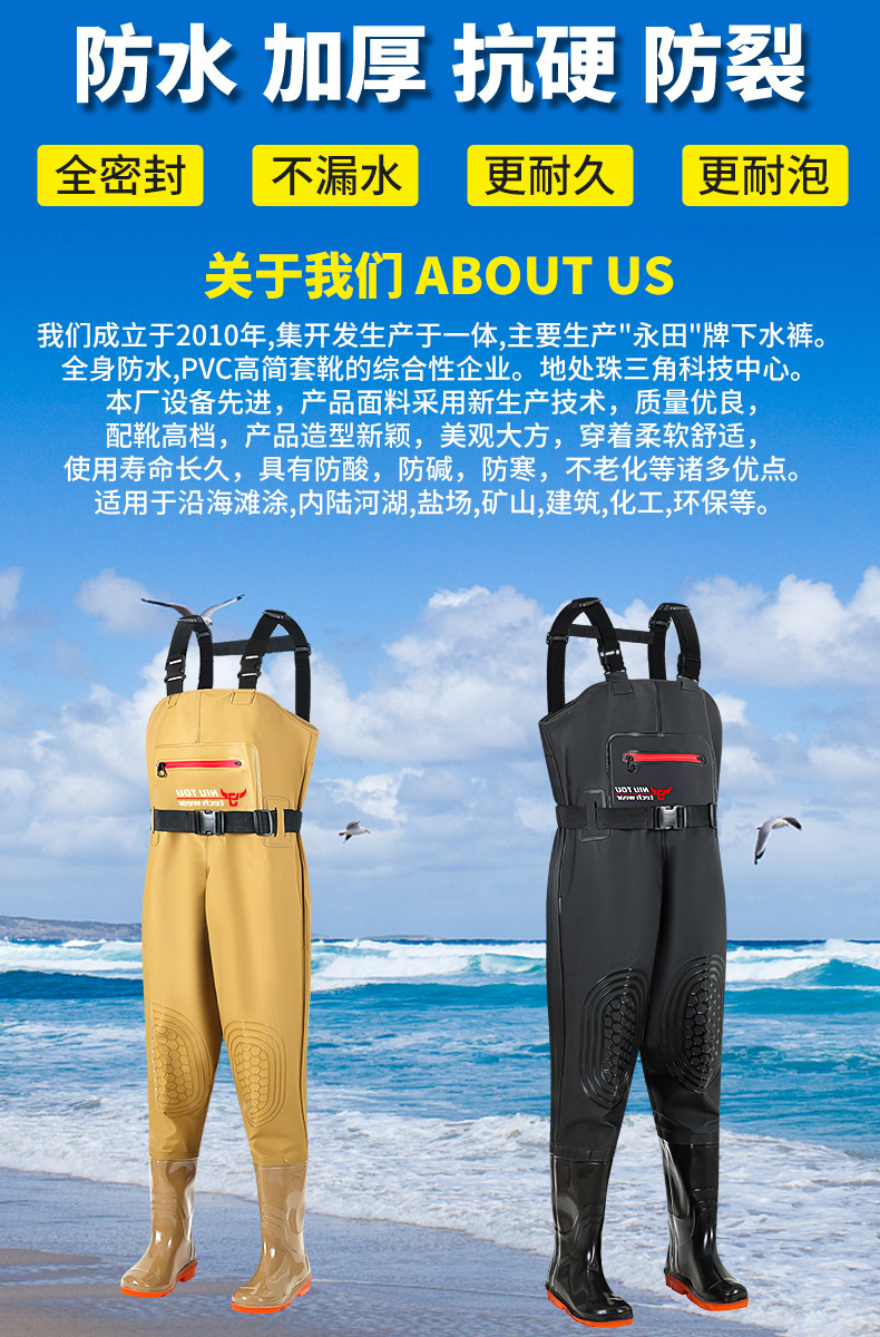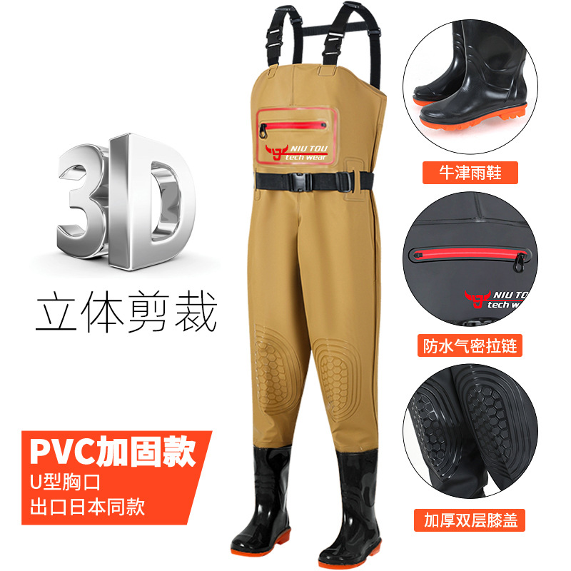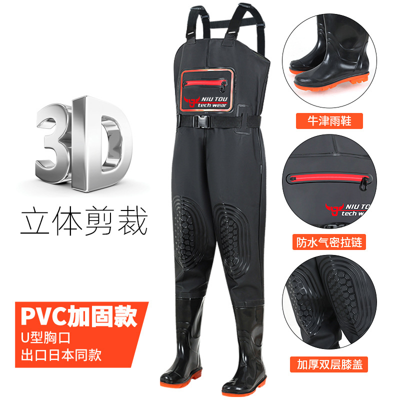 Водонепроницаемые брюки с резиновыми сапогами, кожаные сапоги, водонепроницаемая куртка до половины тела, мужская цельная утолщенная водная обувь для всего тела.