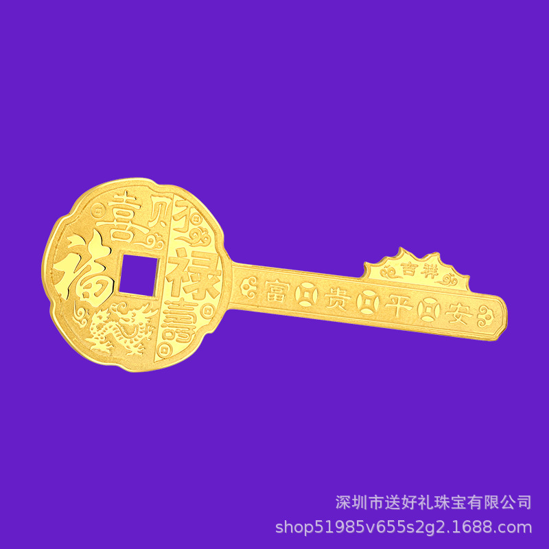 Золотой ключ для удачи, процветания, долголетия, счастья и богатства; золотой ключ оптом с логотипом компании на ежегодной встрече, сувенирный золотой ключ из чистого золота 999 пробы.