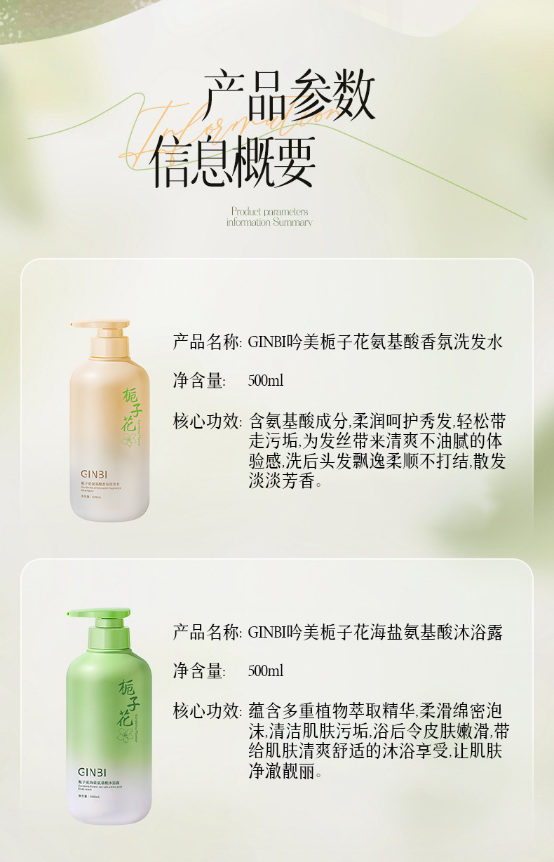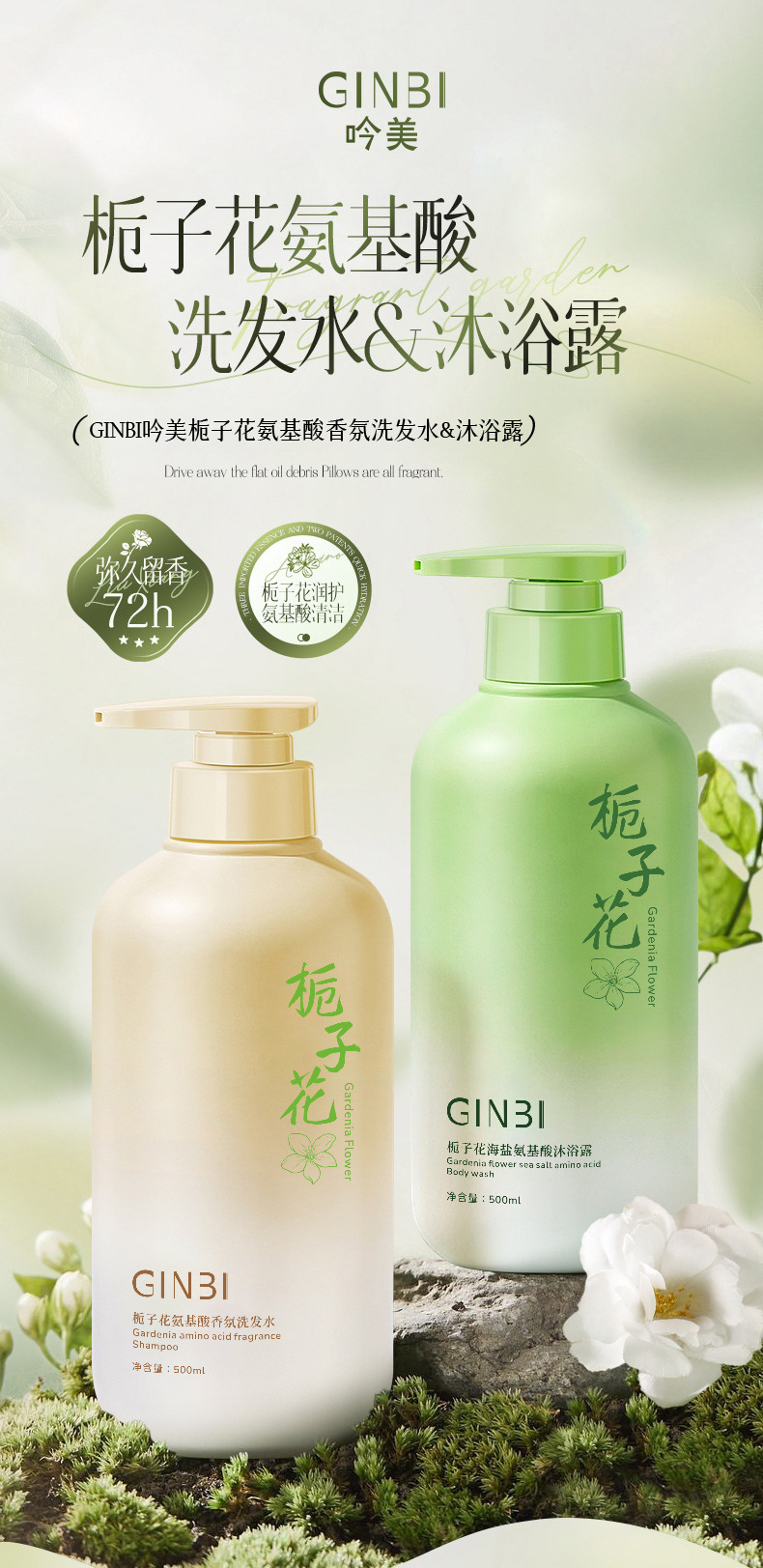 Шампунь с аминокислотным ароматом Yinmei Gardenia; Гель для душа с аминокислотами морской соли Yinmei Gardenia