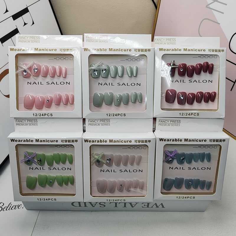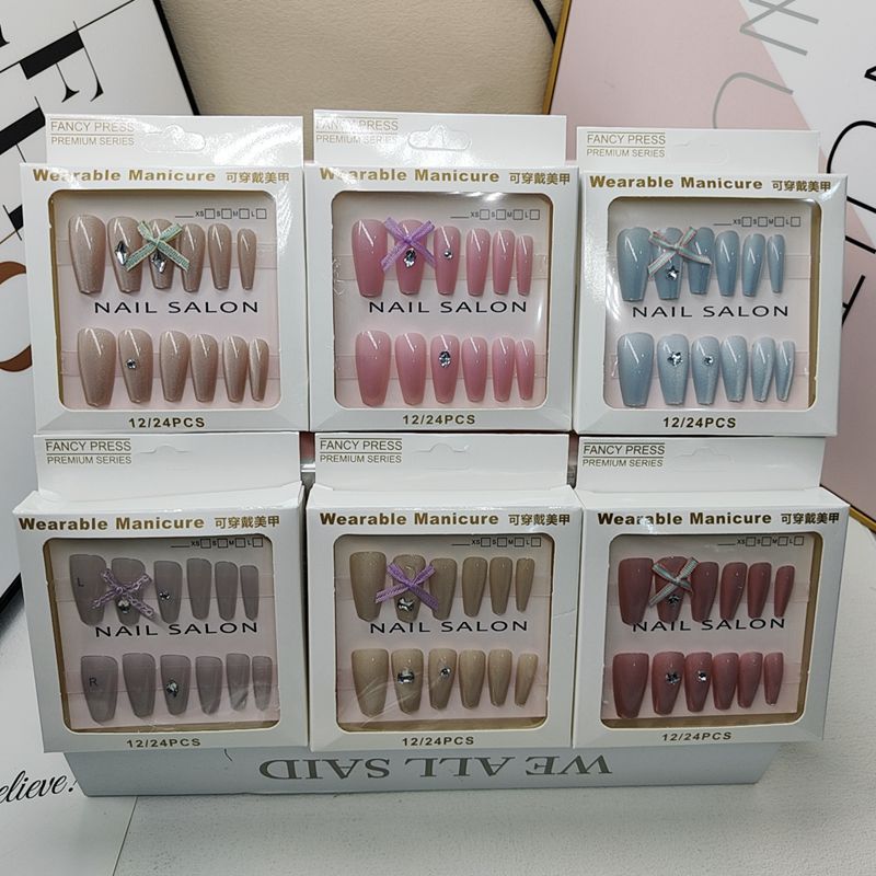 Новые наклейки для ногтей с бантиком «кошачий глаз» в штучной упаковке, трехмерные патчи для дизайна ногтей, носимые ногти с девчачьим сердечком и инструментами для маникюра