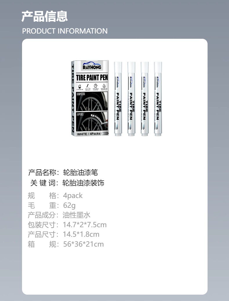 Ручка для покраски шин Rayhong, ручка для автомобильных шин, ручка для украшения, принадлежности для модификации, маркер для граффити