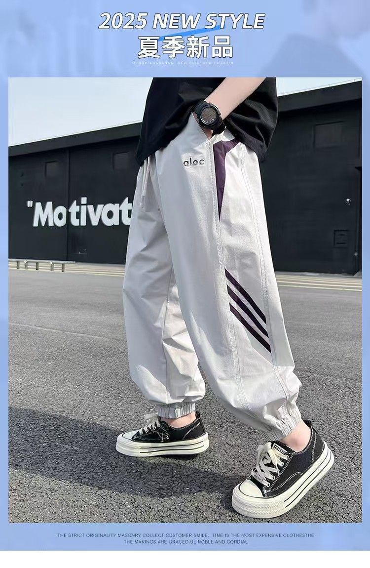 Быстросохнущие брюки для мальчиков, летние детские тонкие длинные брюки, новинка 2025 года, повседневные брюки для старших мальчиков, стильные модные