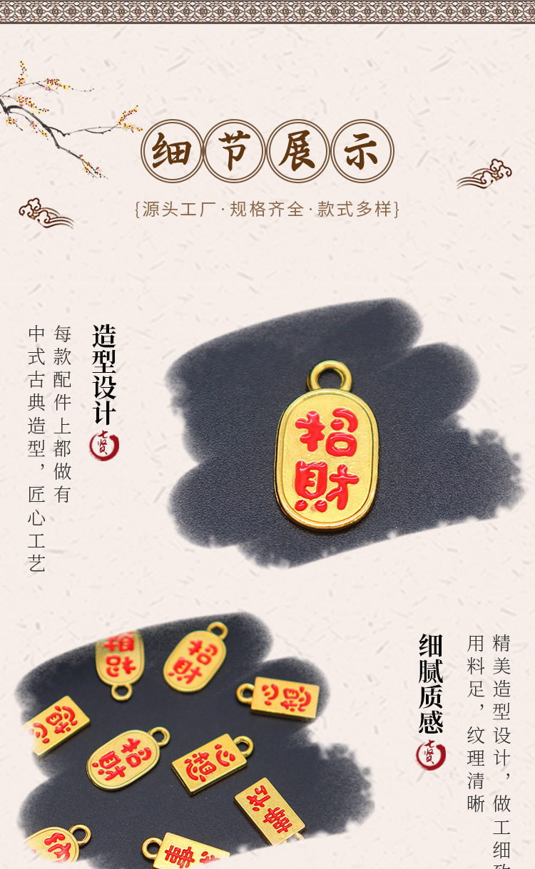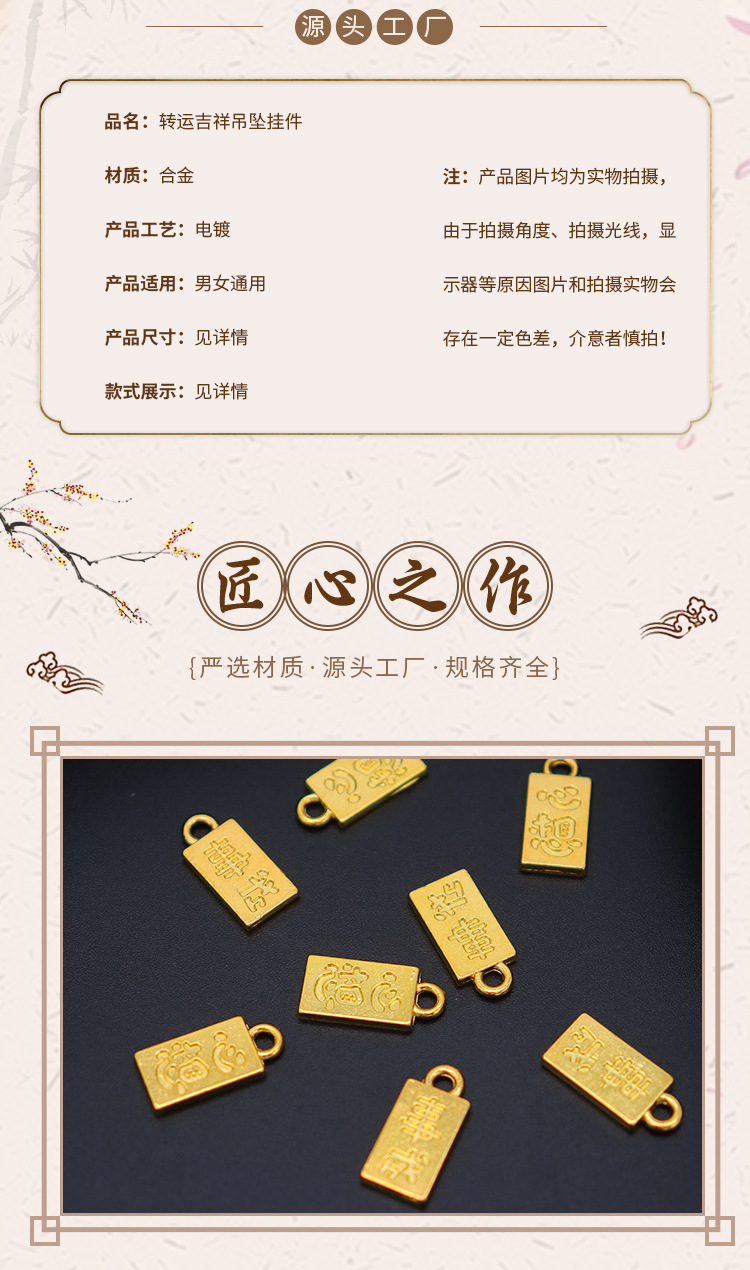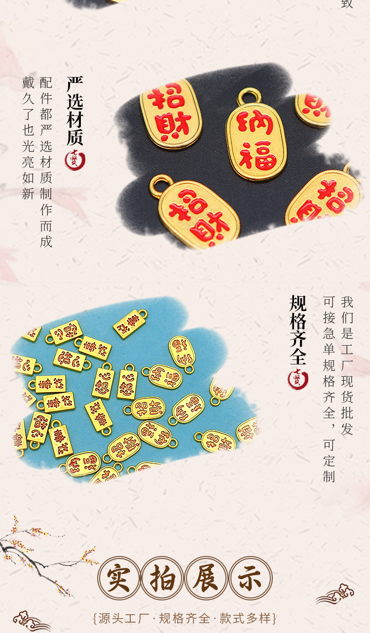 Электрофорез из сплава в китайском стиле, сохраняющий цвет, аксессуары для капель масла, благоприятный двусторонний кулон, кулон, ювелирные изделия ручной работы своими руками