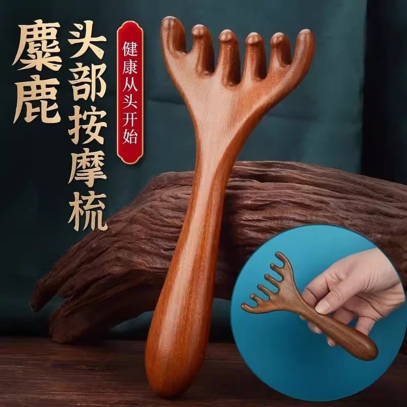 Массажер для головы с шестью когтями из оленьих рогов, расческа для терапии головы, скребок для массажных когтей, расческа для меридианов, скребок для акупунктурных точек, скребок для кожи головы и артефакт для нажатия на голову