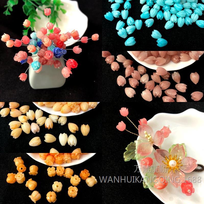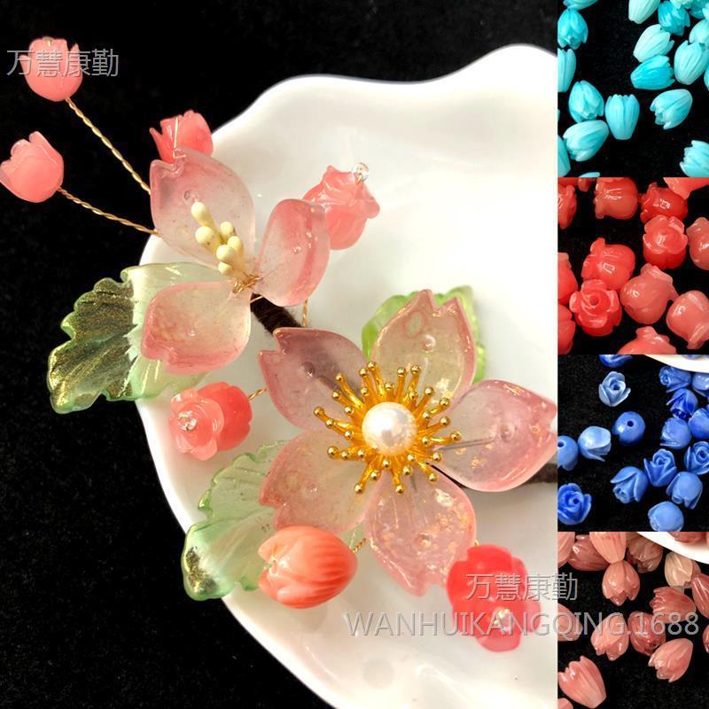 5 штук розового тиснения, имитация натурального камня, тюльпан, ландыш, цветок, бутон, магнолия, древний стиль, ручная работа, сделай сам, свободная заколка для волос из бисера