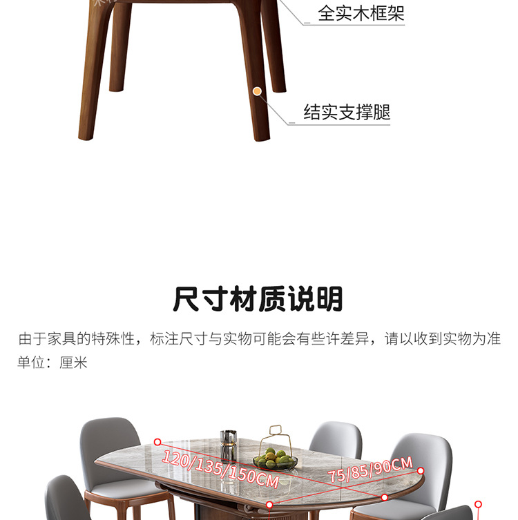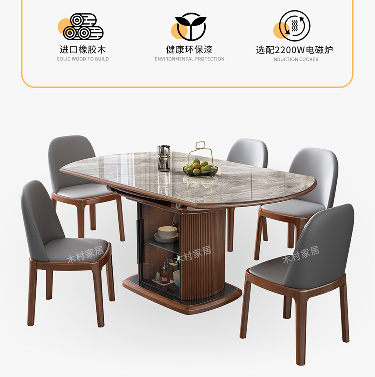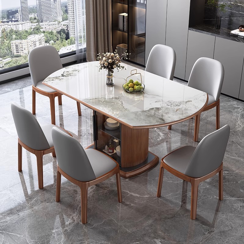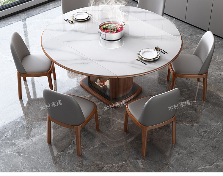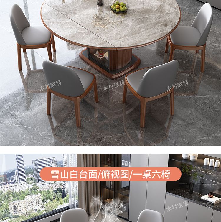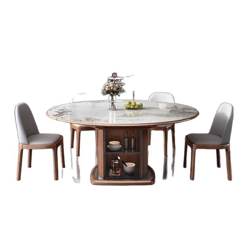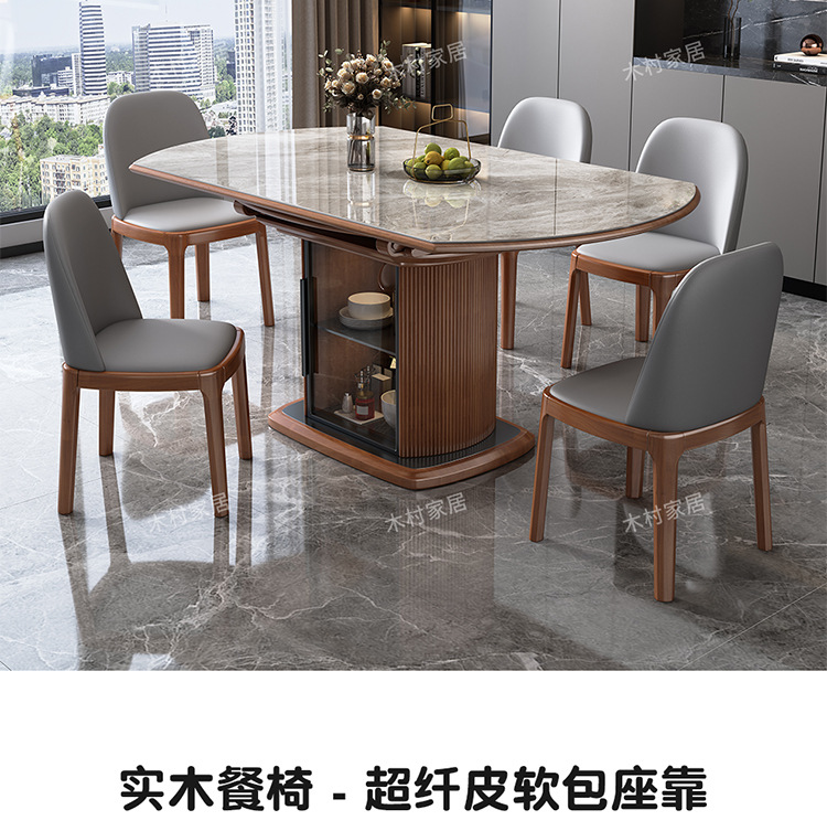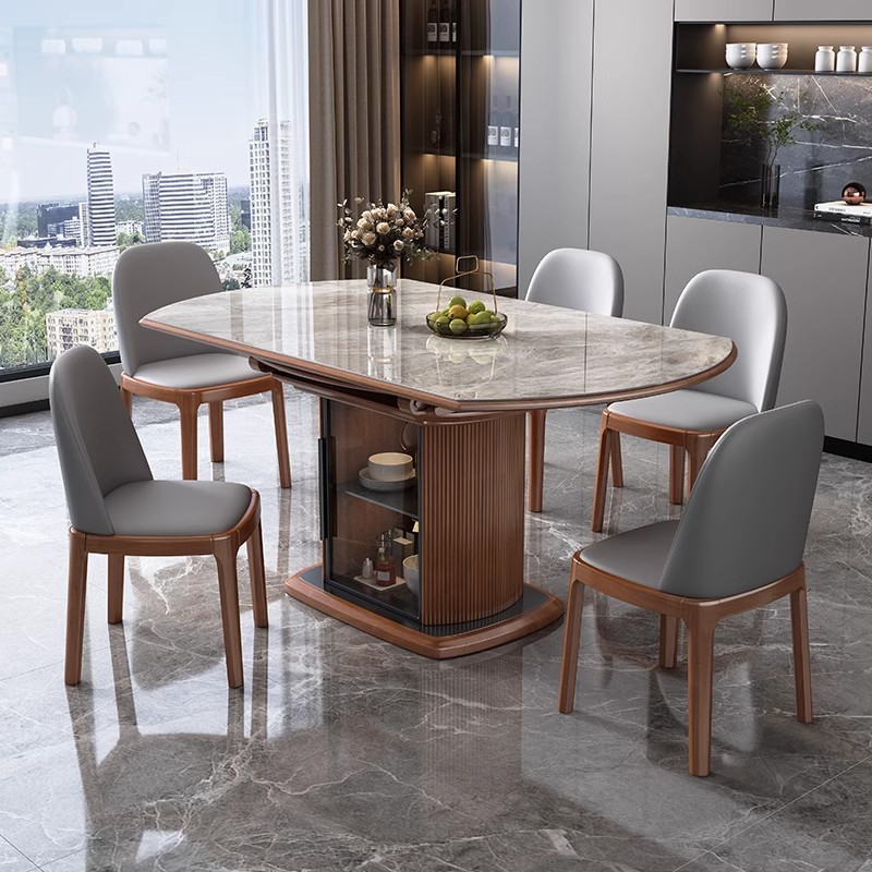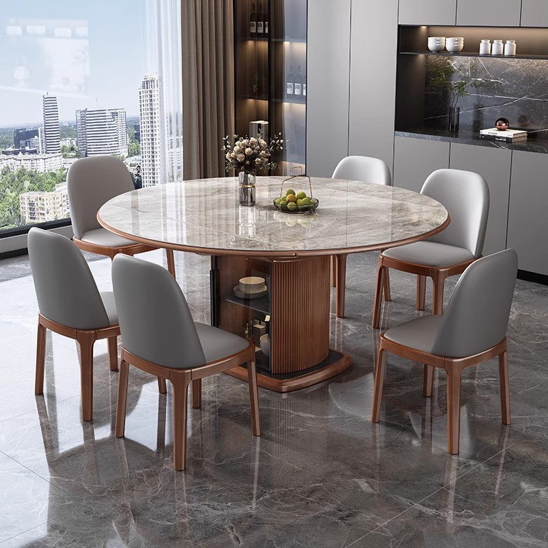 Легкий роскошный обеденный стол и стул из сланца, комбинация для небольшой квартиры, современный простой телескопический складной круглый обеденный стол из цельного дерева для хранения